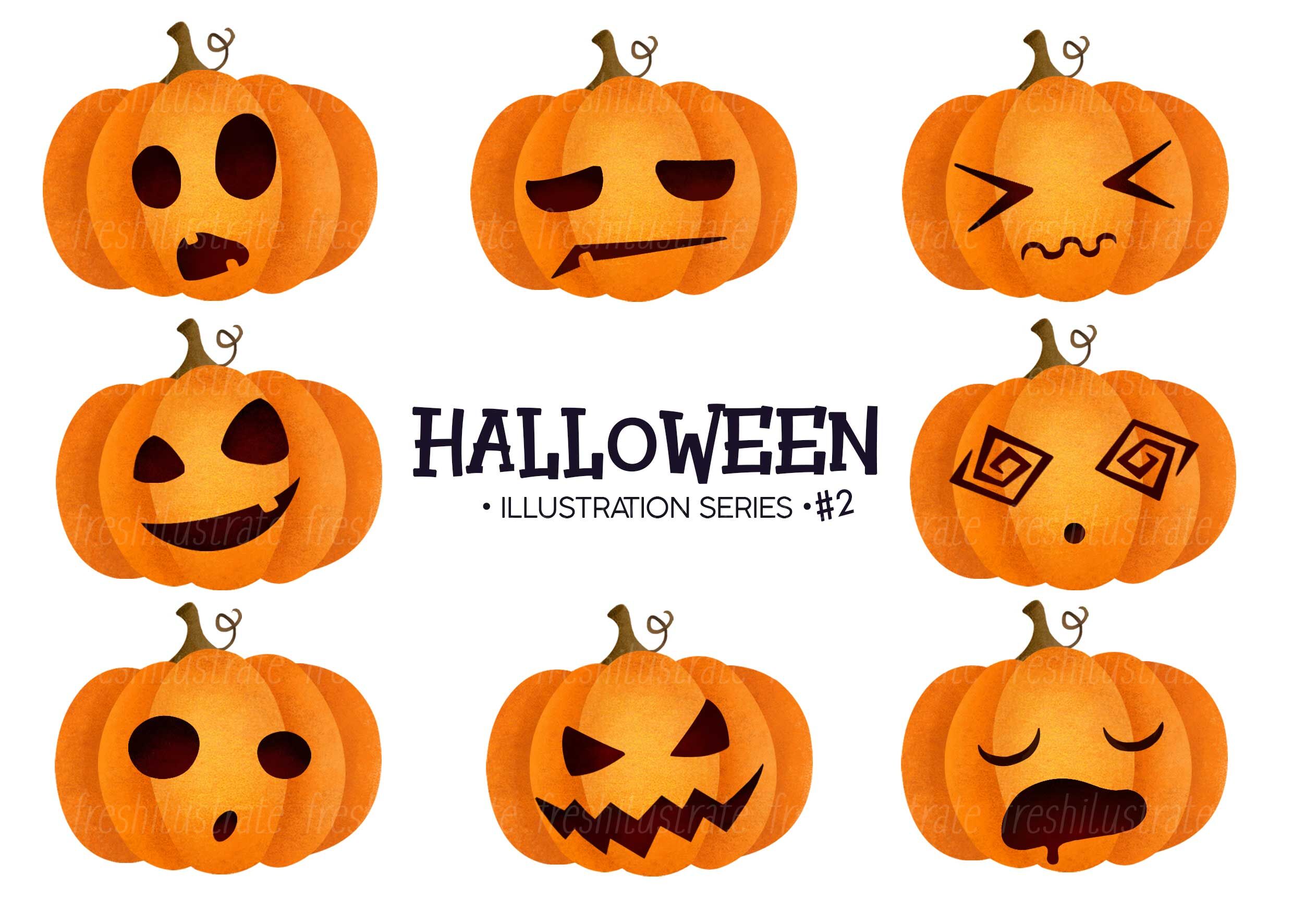 This listing is for a clipart set of 8 Halloween Pumpkins Expression.