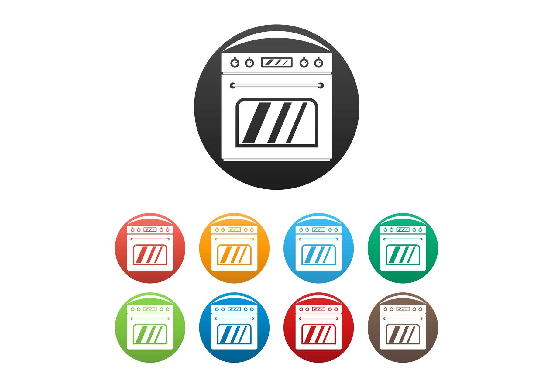 Big gas oven icons set color vector