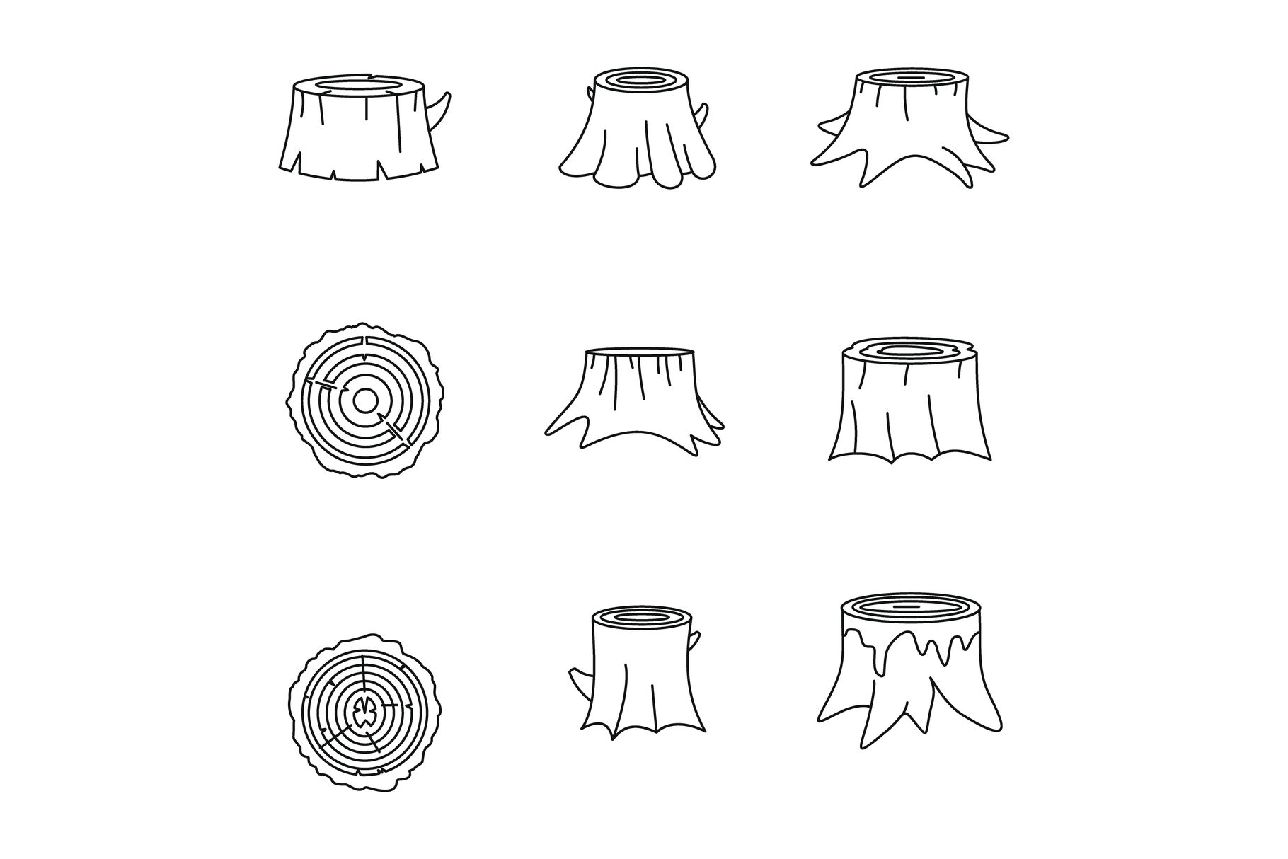 Stumps tree log wood icons set outline style