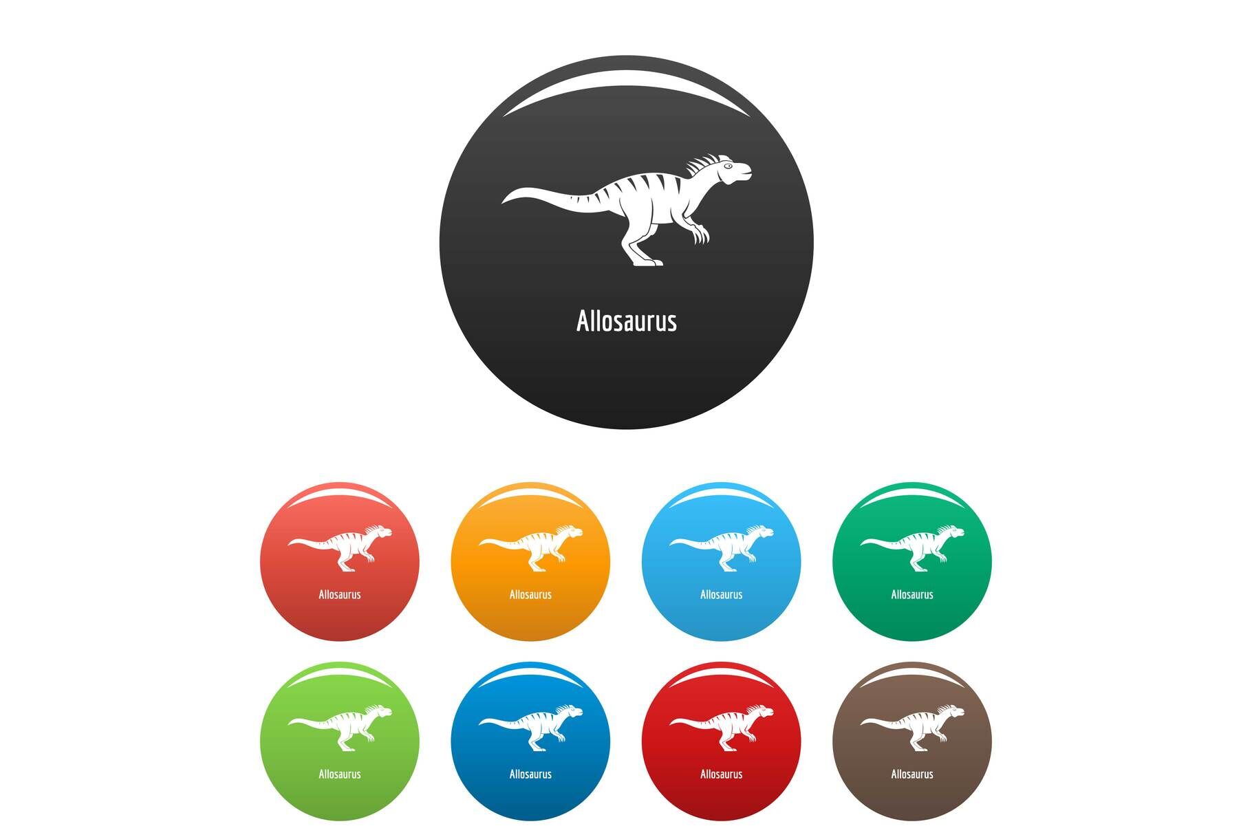 Allosaurus icon. Simple illustration of allosaurus vector icons set color isolated on white. Formats: JPG, EPS, AI, PSD,PNG, AI