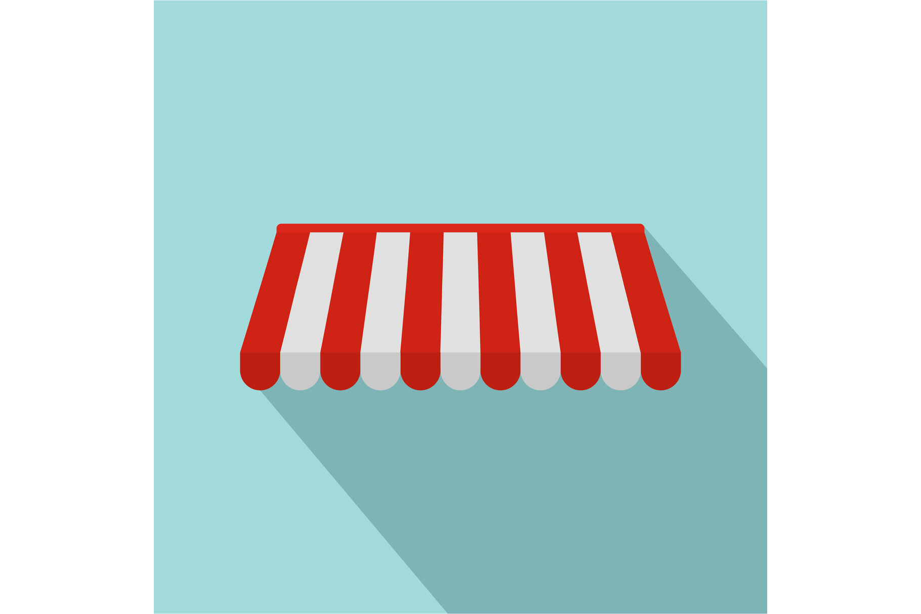 Red white outdoor street tent icon. Flat illustration of red white outdoor street tent vector icon for web design. Formats: JPG, EPS, AI, PSD,PNG, AI