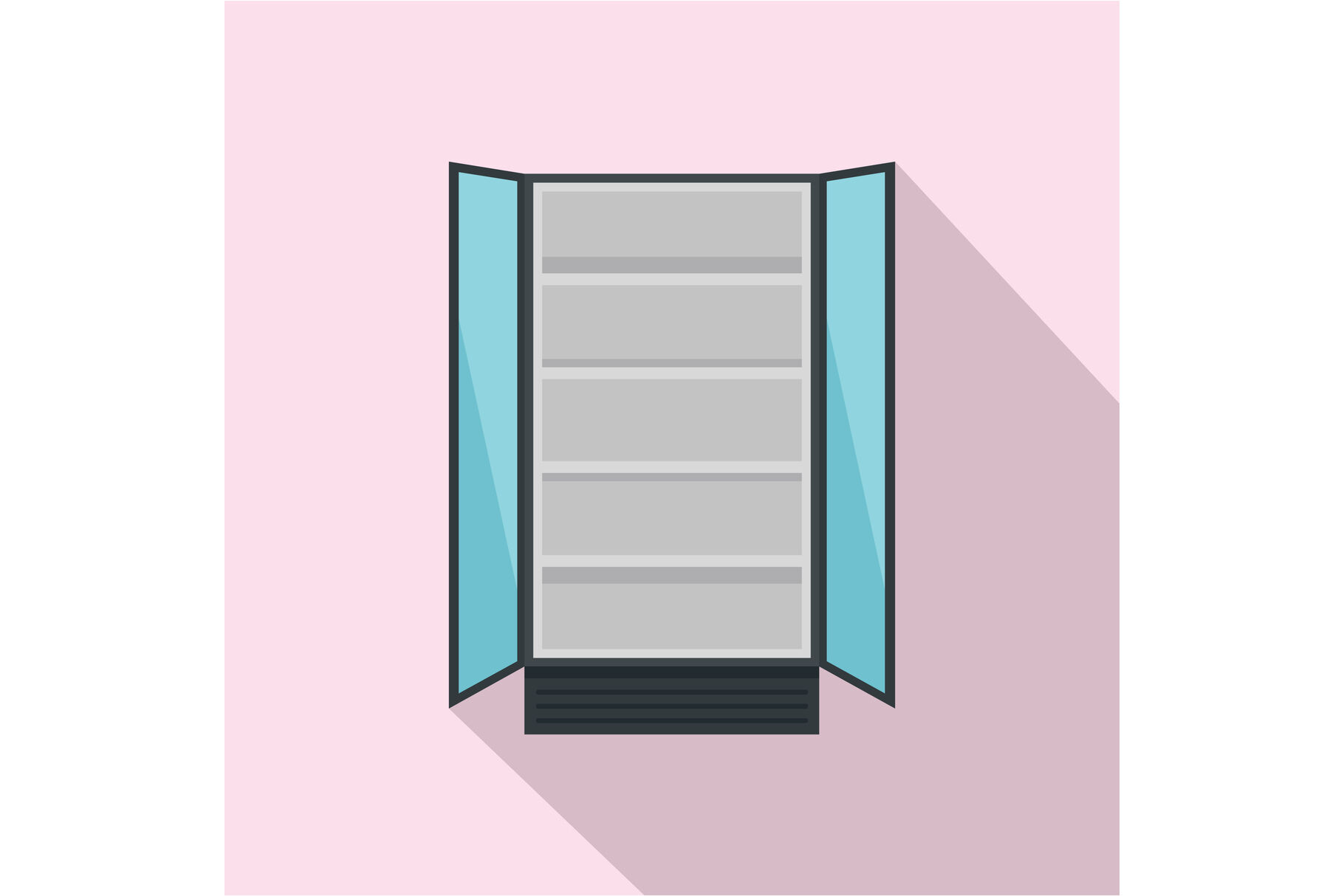 Open commercial fridge icon, flat style