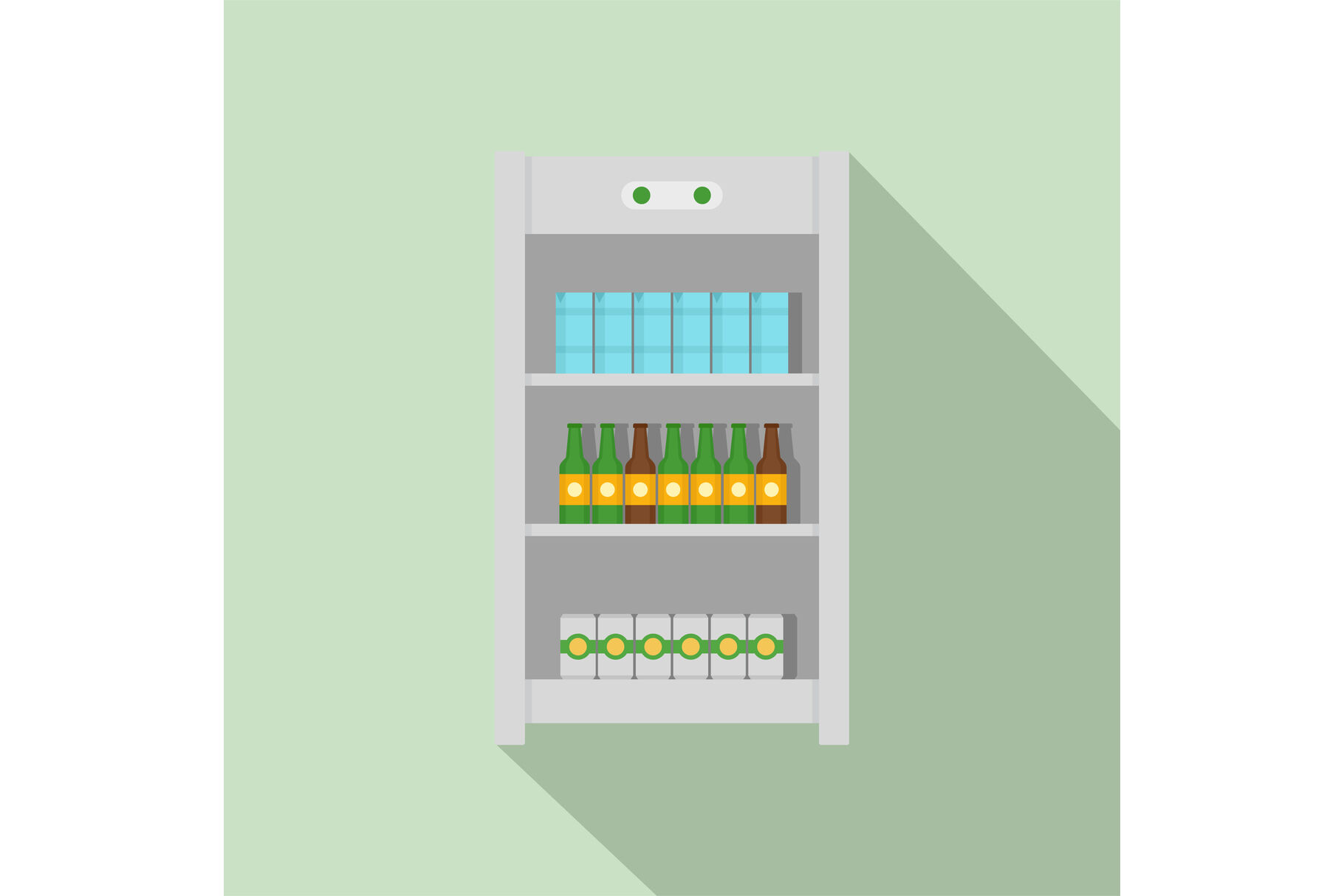 Drinks refrigerator icon. Flat illustration of drinks refrigerator vector icon for web design. Formats: JPG, EPS, AI, PSD,PNG, AI