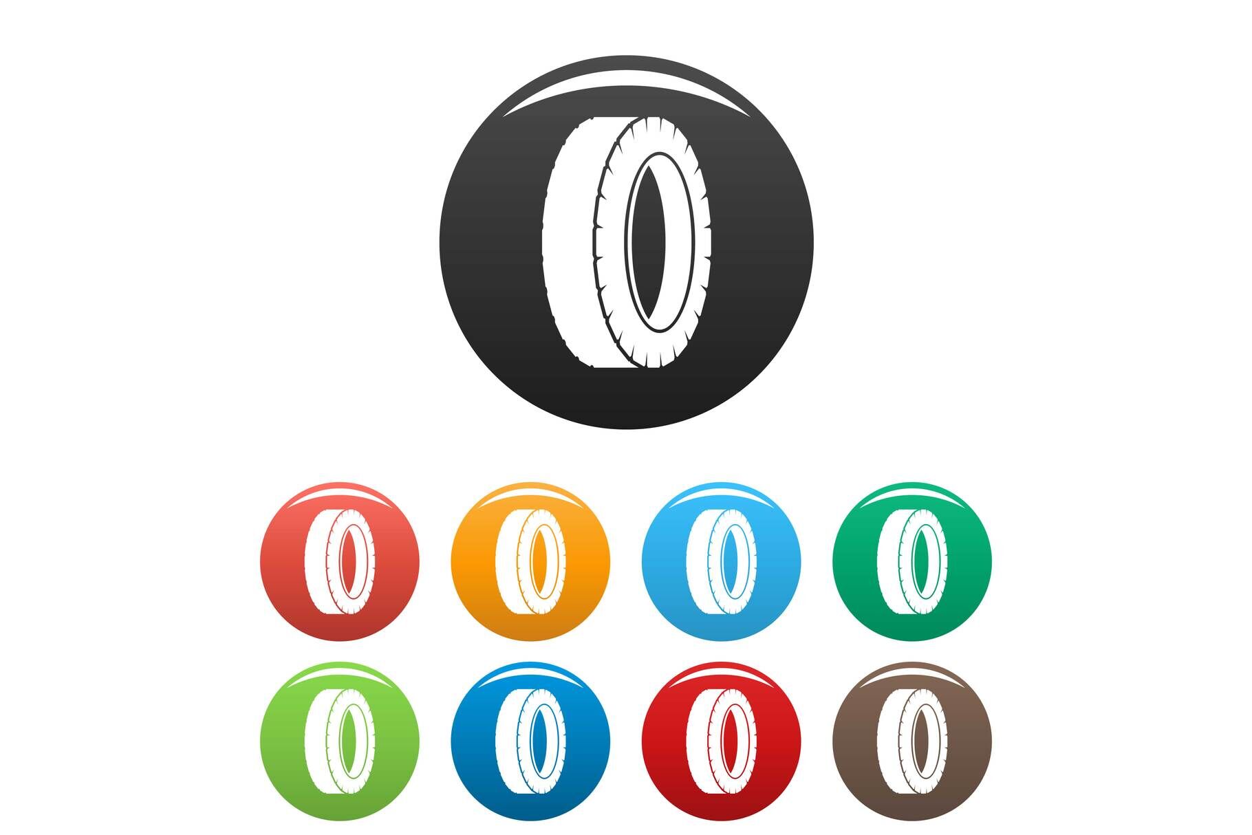 Turning tire icons set color vector