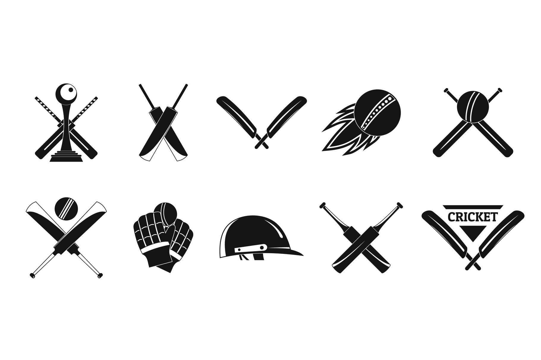 Cricket sport ball bat logo icons set. Simple illustration of 10 cricket sport ball bat logo vector icons for web. Formats: JPG, EPS, AI, PSD,PNG, AI