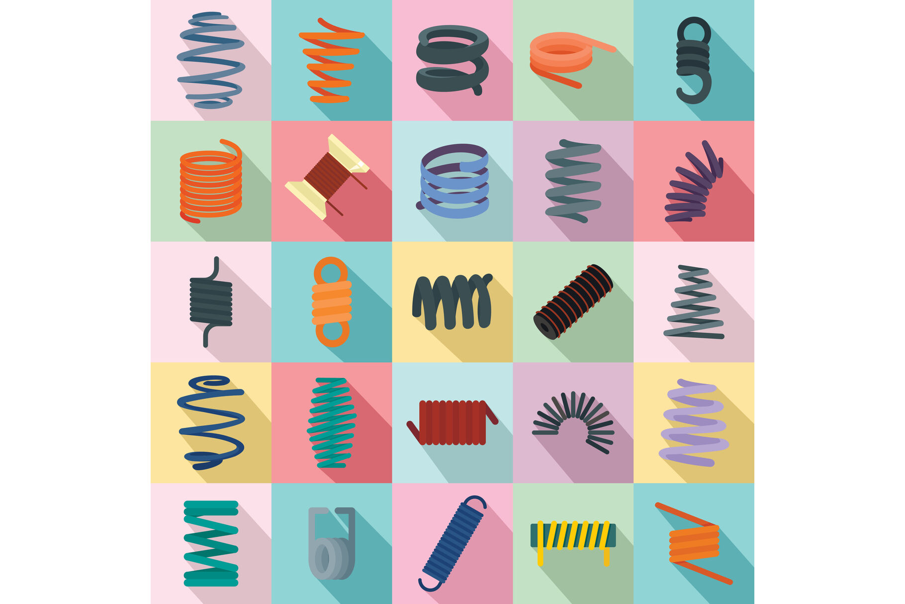Coil spring cable icons set. Flat illustration of 25 coil spring cable vector icons for web. Formats: JPG, EPS, AI, PSD,PNG, AI