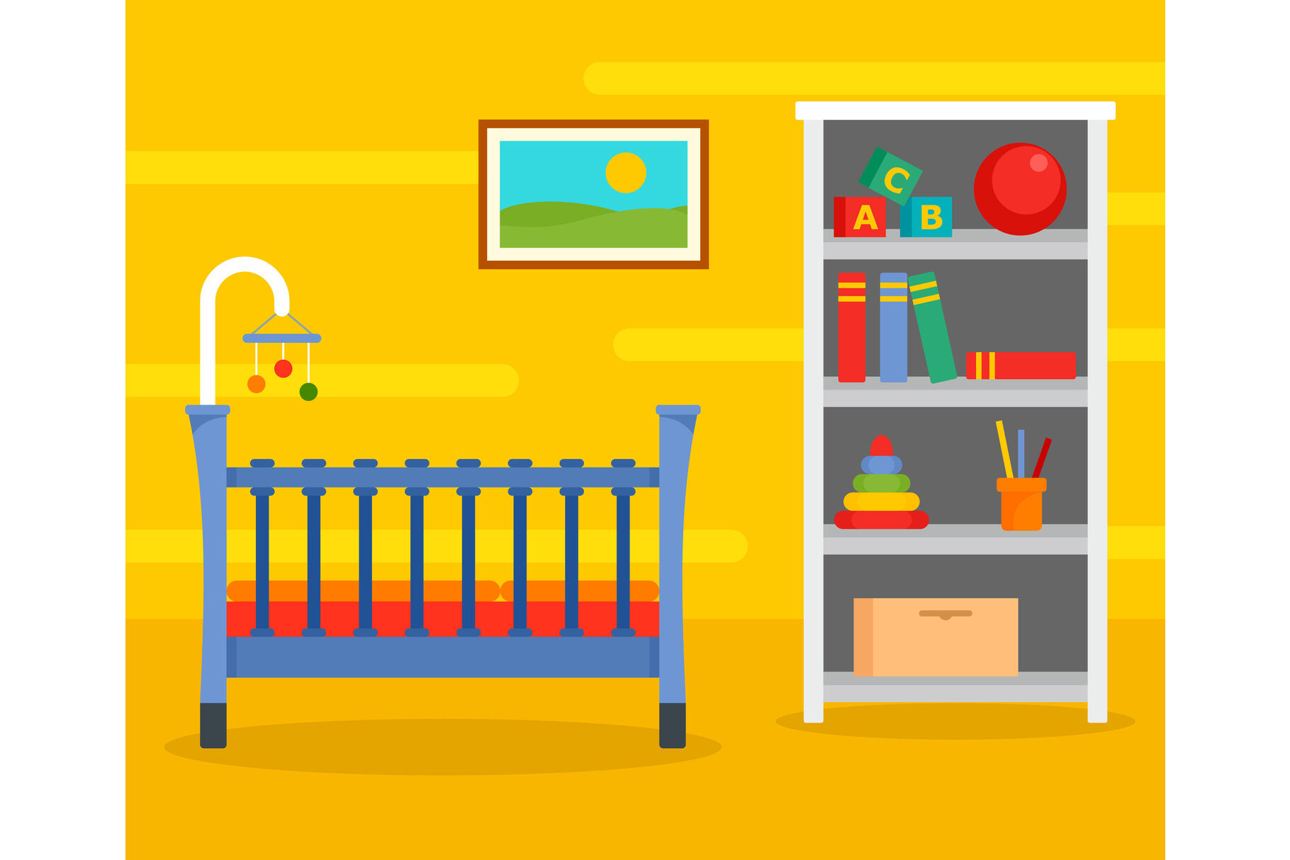 Yellow baby room background, flat style