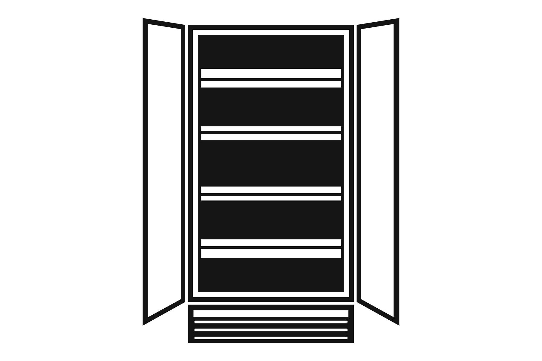 Open glass fridge icon, simple style