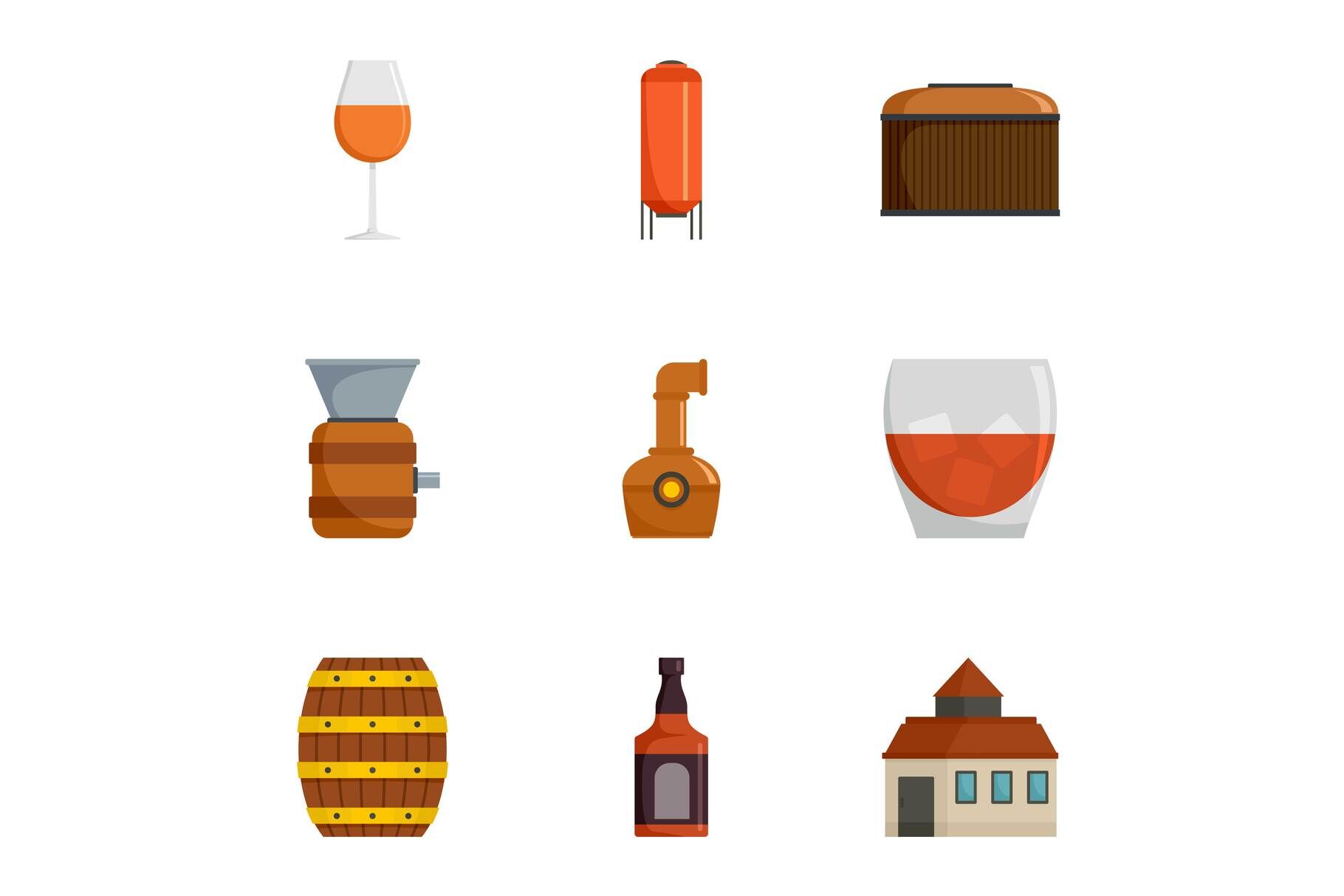 Grape plantation icons set. Cartoon set of 9 grape plantation vector icons for web isolated on white background. Formats: JPG, EPS, AI, PSD,PNG, AI
