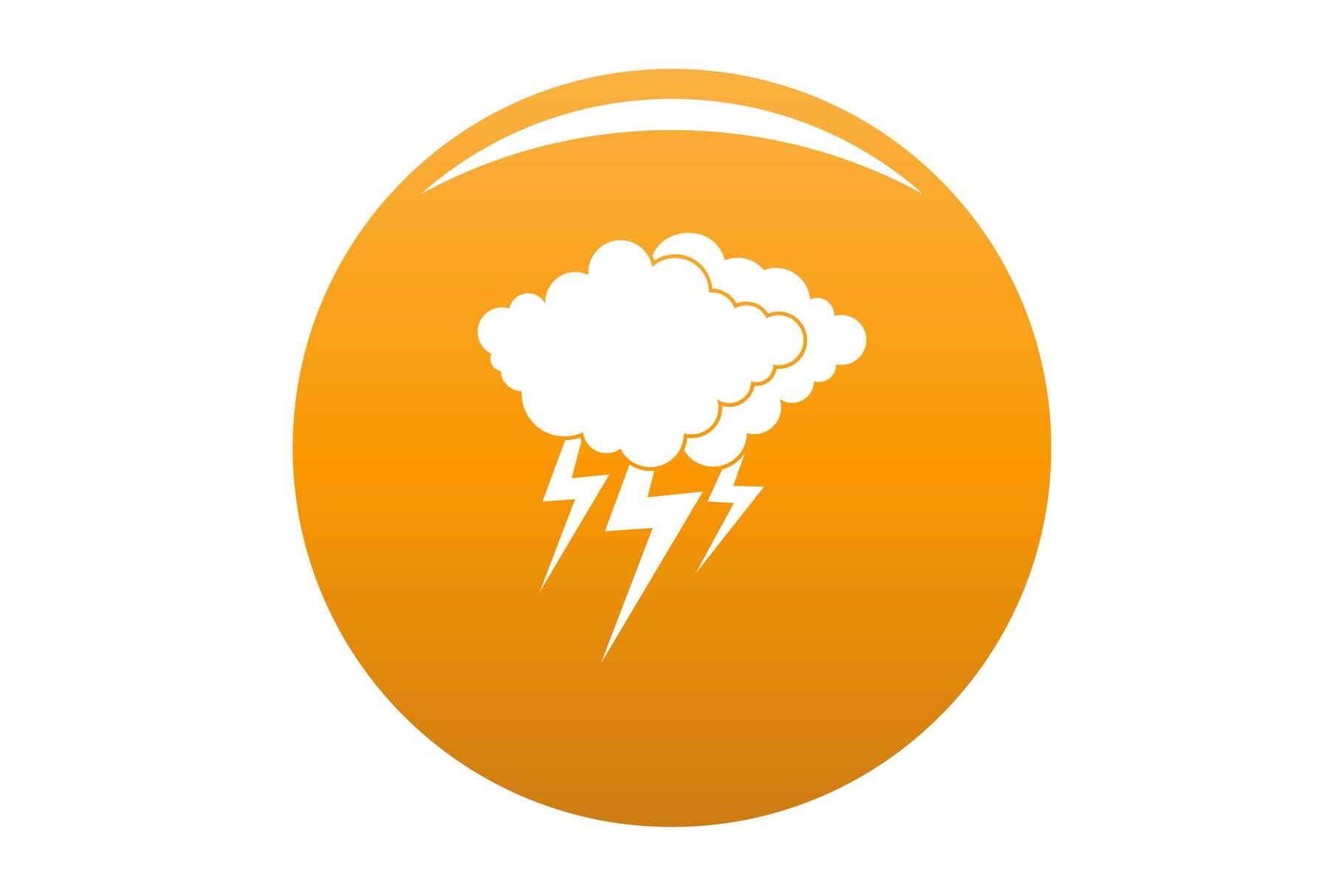 Cloud thunder flash icon. Simple illustration of cloud thunder flash vector icon for any design orange. Formats: JPG, EPS, AI, PSD,PNG, AI