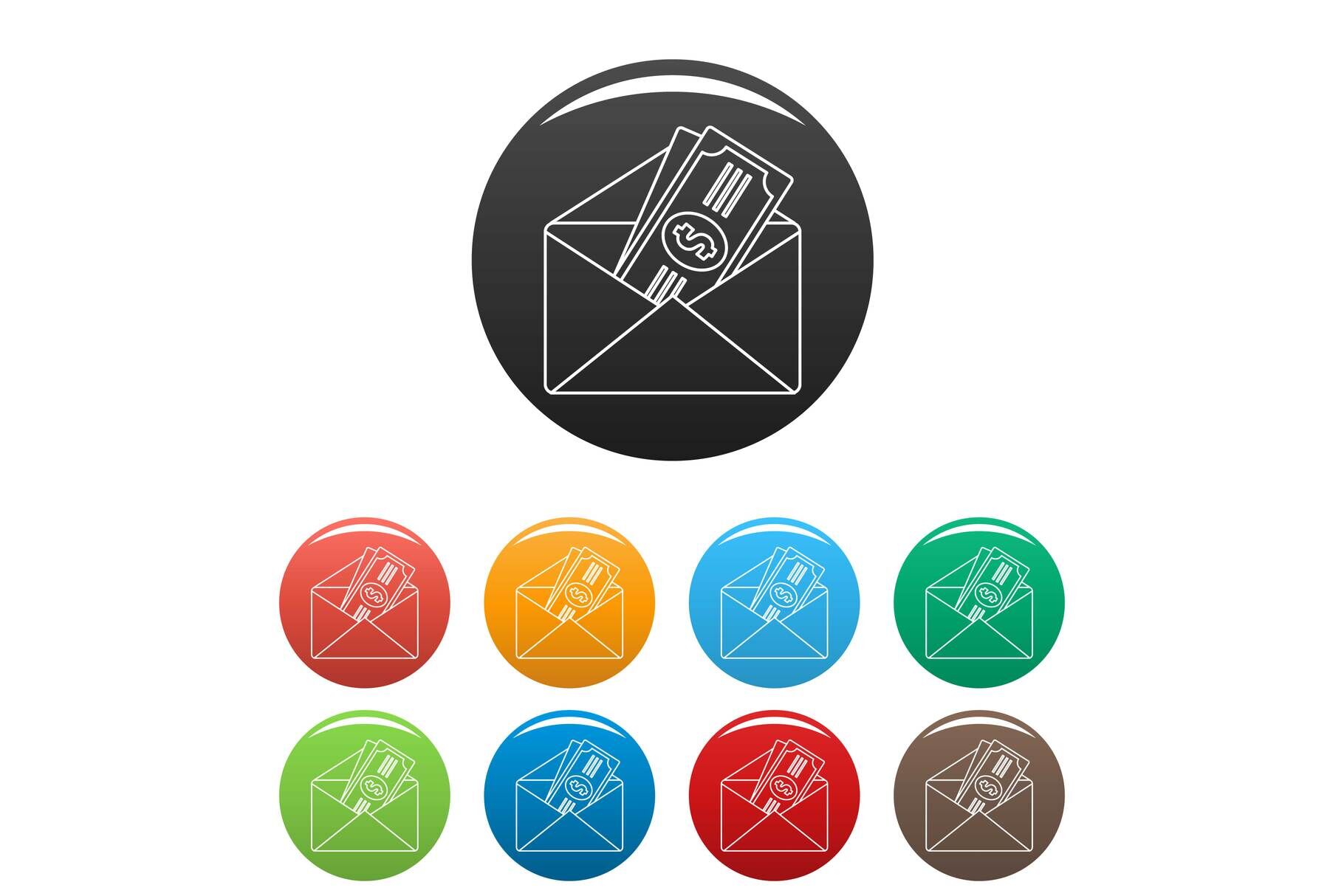 Money in envelope icon. Outline illustration of money in envelope vector icons set color isolated on white. Formats: JPG, EPS, AI, PSD,PNG, AI