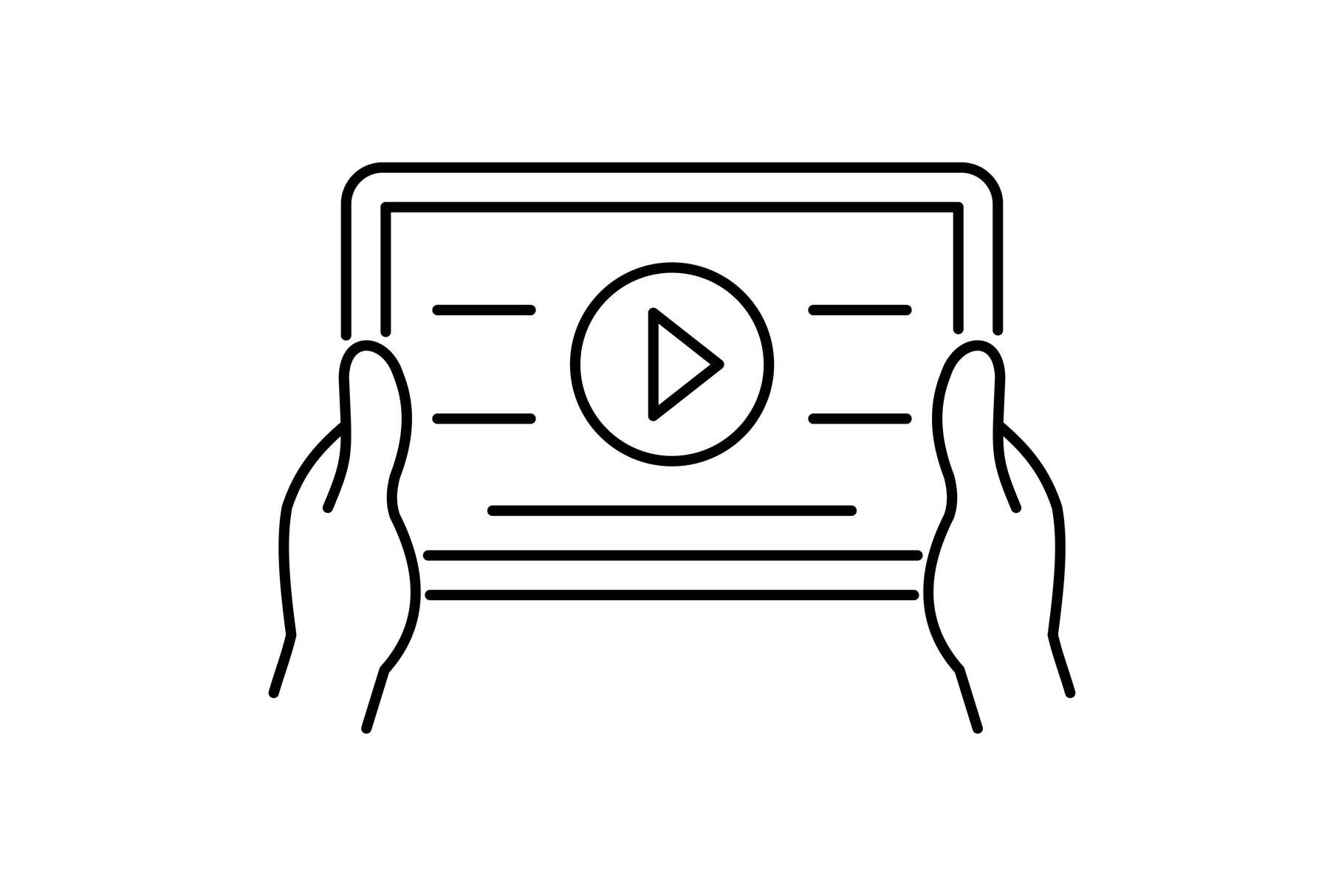 Device video play icon. Outline illustration of device video play vector icon for web design isolated on white background. Formats: JPG, EPS, AI, PSD,PNG, AI