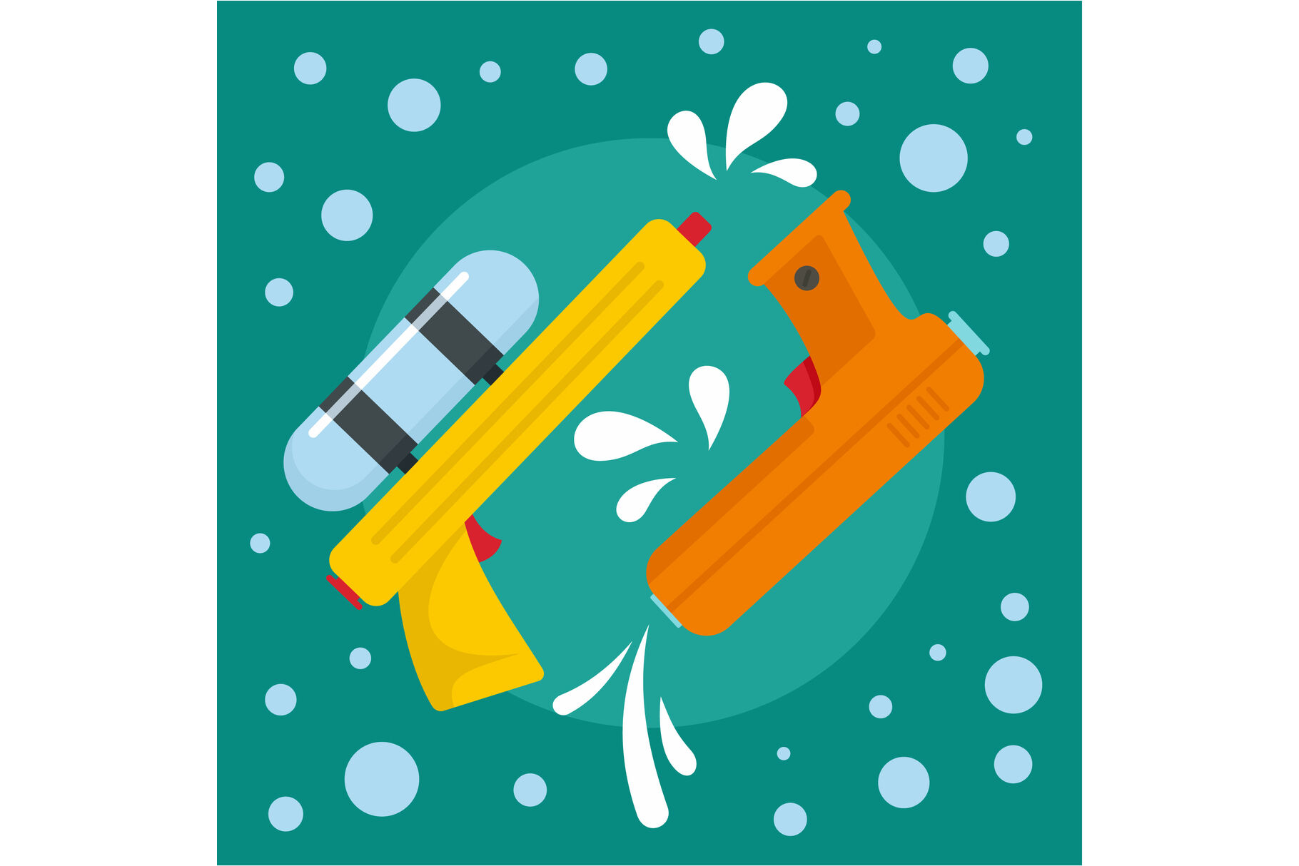 Water pistol festival background. Flat illustration of water pistol festival vector background for web design. Formats: JPG, EPS, AI, PSD,PNG, AI