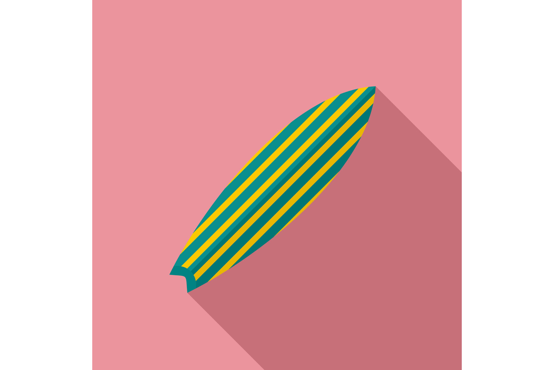 Green striped surfboard icon. Flat illustration of green striped surfboard vector icon for web design. Formats: JPG, EPS, AI, PSD,PNG, AI