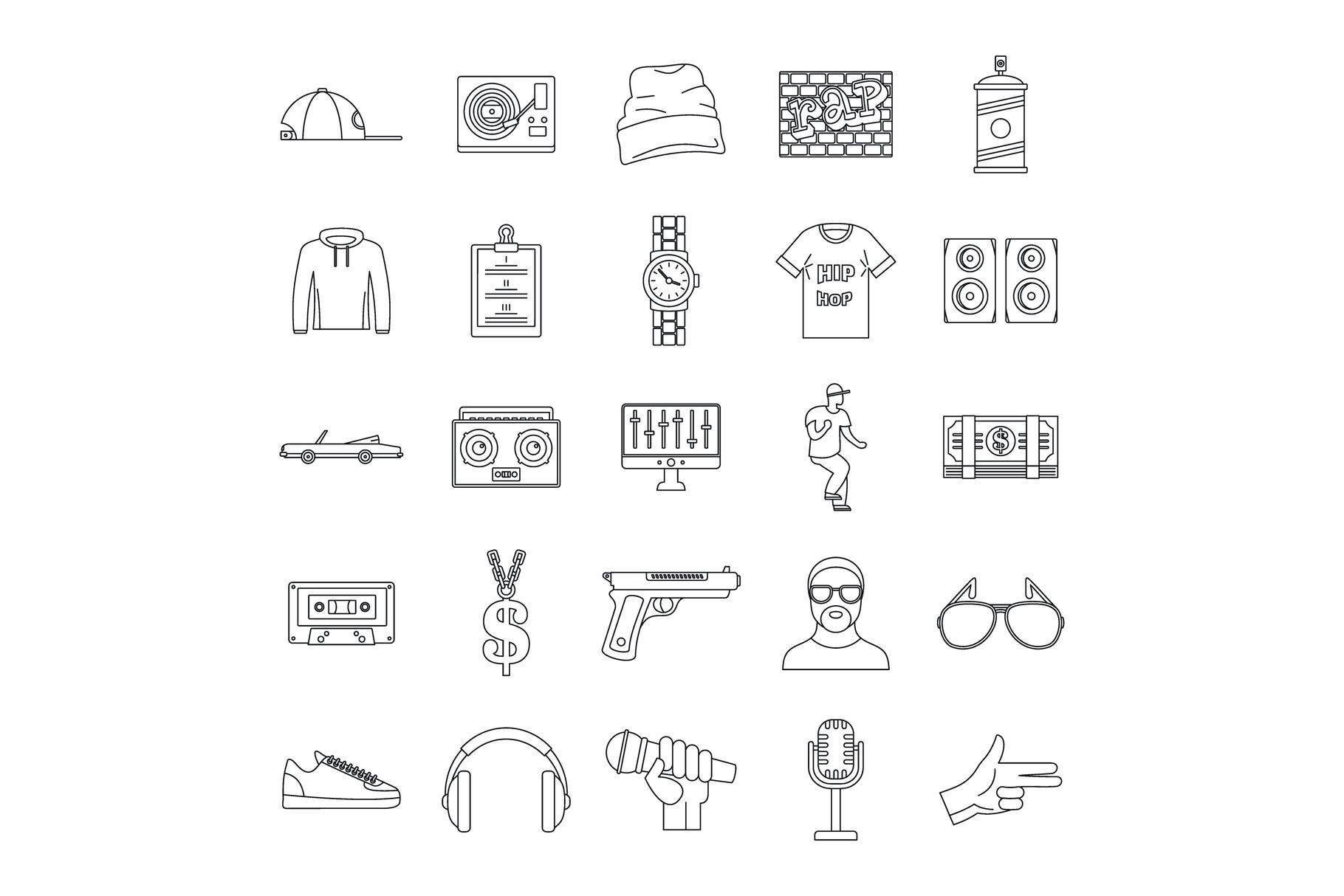 Hiphop rap swag music dance icons set. Outline illustration of 16 hiphop rap swag music dance vector icons for web. Formats: JPG, EPS, AI, PSD,PNG, AI