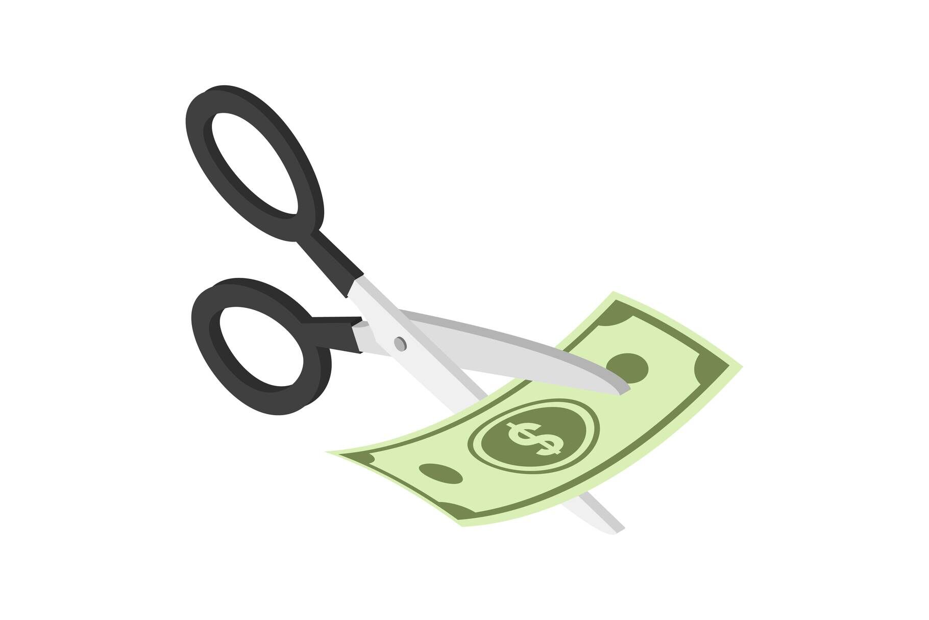 Cut money icon. Isometric of cut money vector icon for web design isolated on white background. Formats: JPG, EPS, AI, PSD,PNG, AI