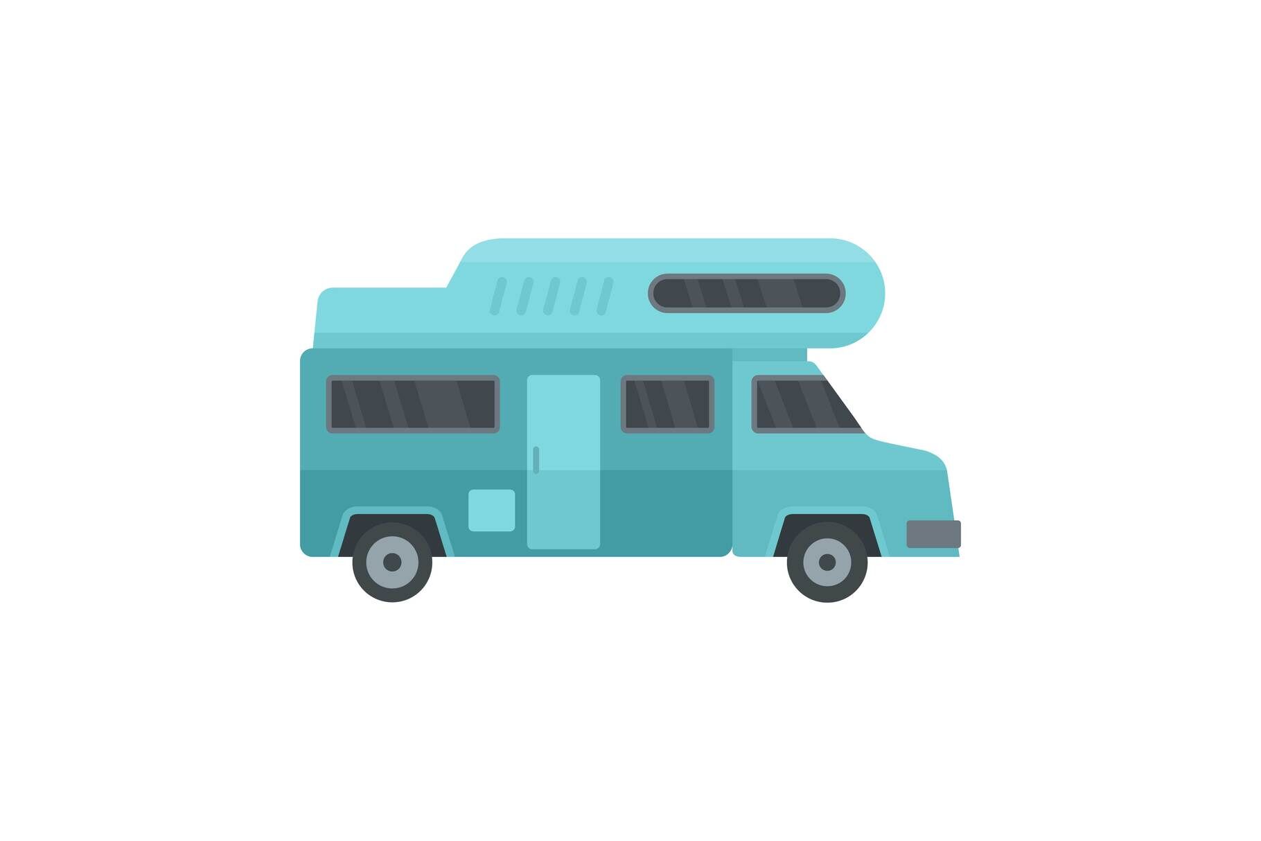 Camping truck icon. Flat illustration of camping truck vector icon for web isolated on white. Formats: JPG, EPS, AI, PSD,PNG, AI