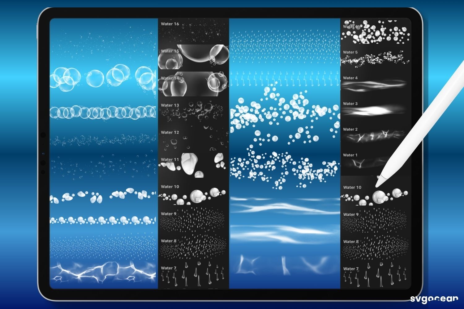 Water Procreate Brushes Clean and easy to use Stamps are to be used with the program PROCREATE on the a iPad with an Apple Pencil. You can use these in any color or opacity, Instant Download in .brushset format Please note it is ONLY compatible with the Procreate App. Files you will receive: 1 .brushset file How to use: 1. After the purchase / payment confirmation you will receive an email with the download link. 2. Download the files. 3. In the Procreate app tap on "+" and import your brushes.