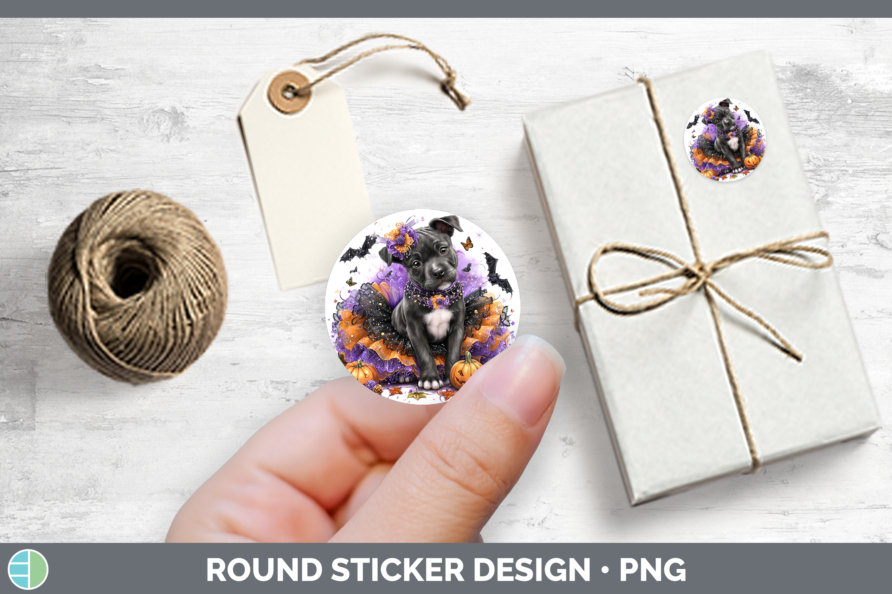 Dogs 03 Halloween American Staffordshire Stickers | Round La