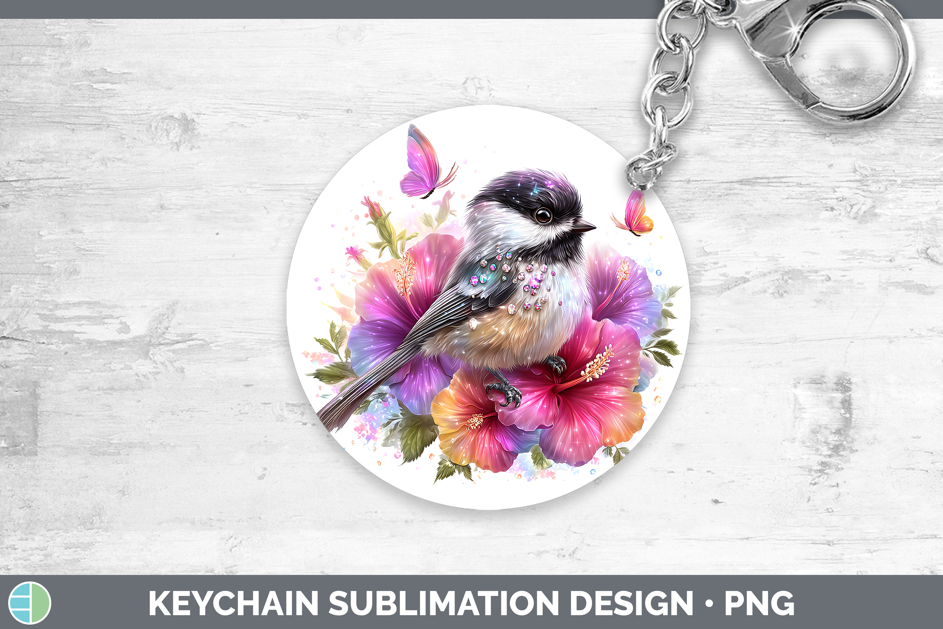 Chickadee Keychain Birds 01 Floral Summer Sublimation Keyrin