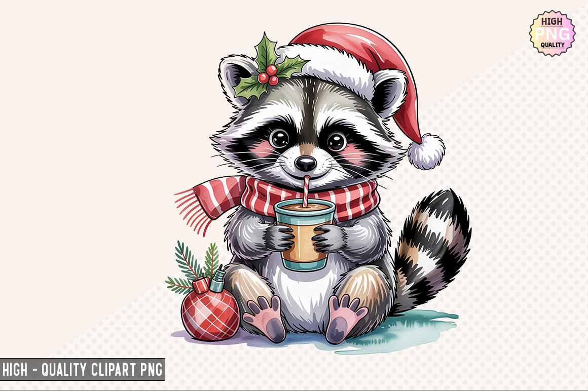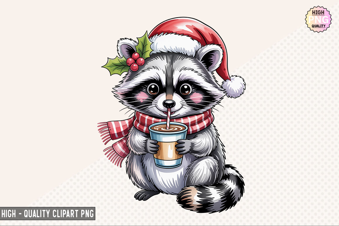 Christmas Raccoon And Iced Coffee Bundle You Will Receive: ✅ Transparent PNG Files ✅ 12 X 12 inches ✅ 300 dpi resolution – High resolution ✅ Commercial use allowed Ideal for print applications on items like stickers, T-shirts, mugs, cards, framed art, scrapbooks, wall decorations, and beyond.