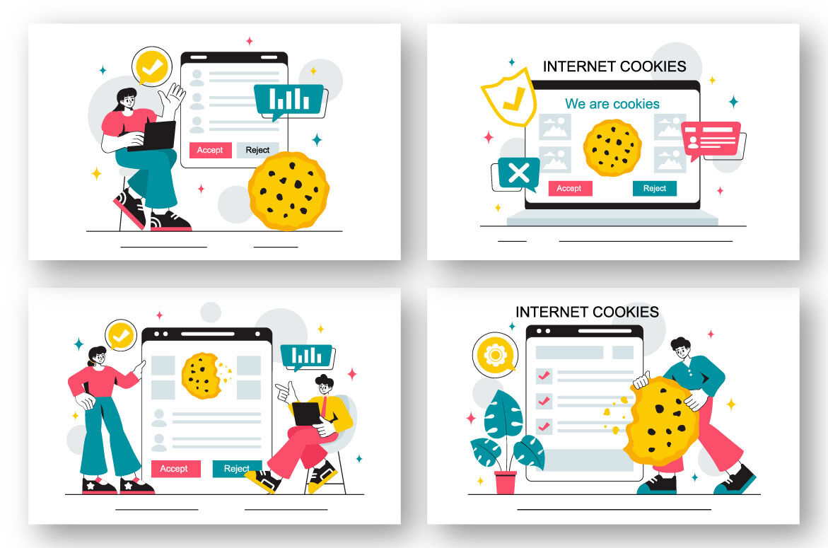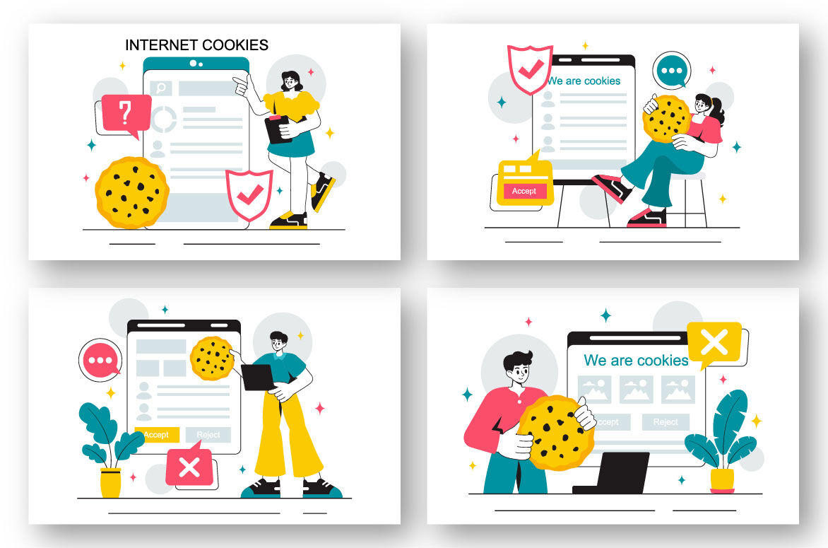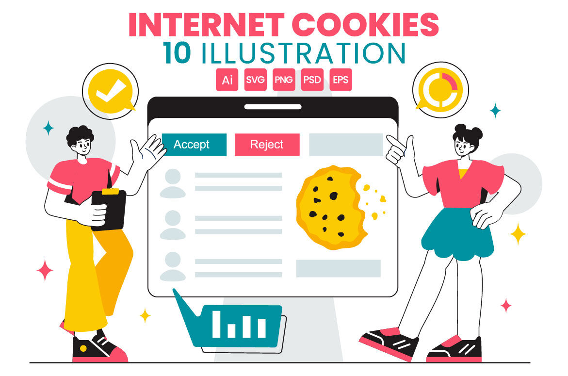 Internet Cookies Technology Vector Illustration Featuring Tracking Cookie Records of User Browsing Activities on a Website in a Flat Background Suitable for Poster, Web Banner, Brochure, Landing Page and Others Background Template Features:    - Fully editable vector files, easy to edit the object, color and background     - Include 100% vector Ai, Eps 10, SVG    - PNG transparent background    - Include Psd Photoshop ( non grouped / unlabeled )    - Layered    - Preview jpeg    - Help File, to view more file properties    - Enjoy and don't hesitate to contact us    - Thanks :-)