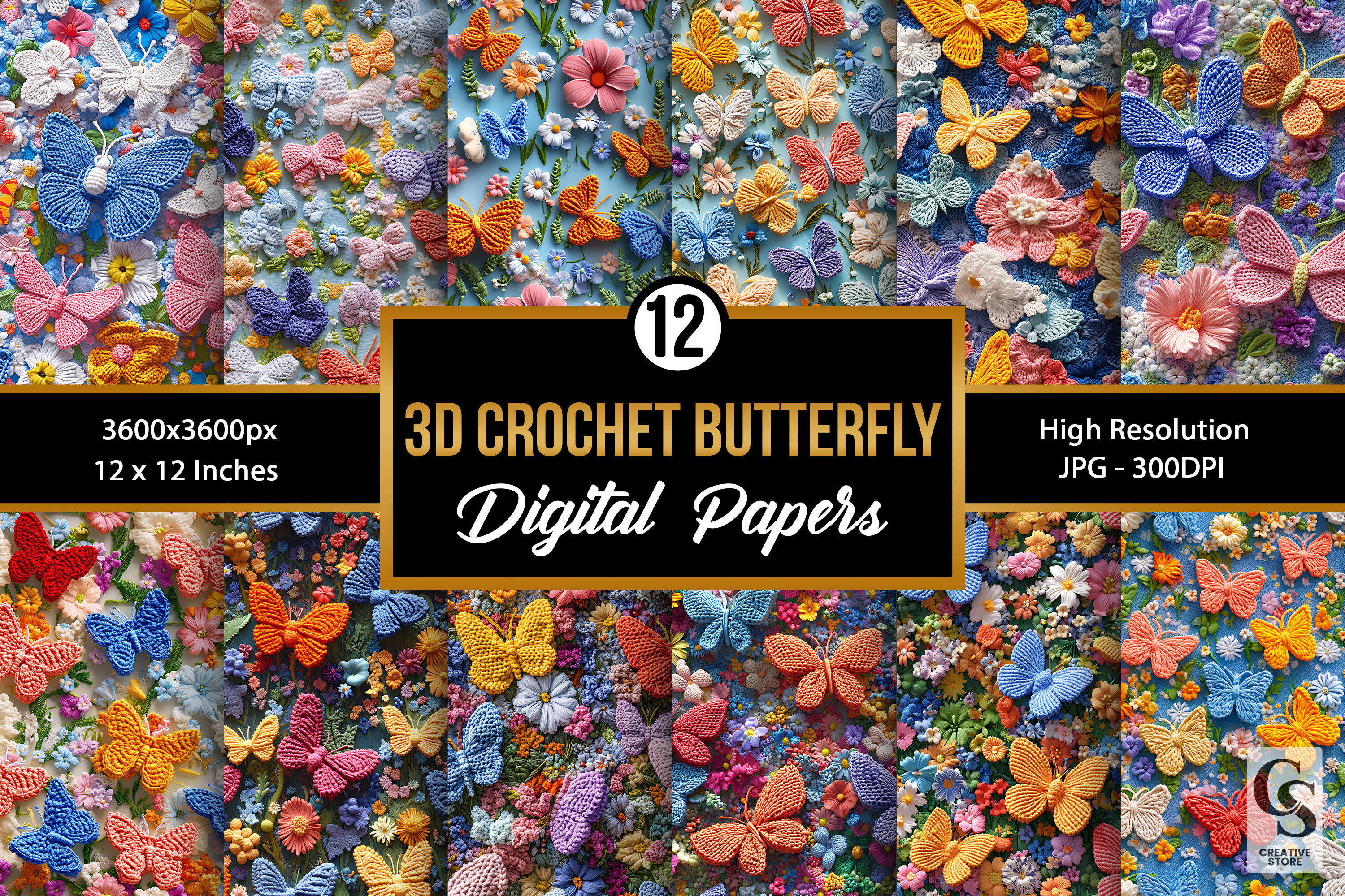 3D Crochet Floral Butterflies | Handmade Butterfly Flowers | Whimsical Crochet Pattern ★ Included ★ • 12 Digital Papers within the zip file. • All files in High-Resolution 300dpi • JPG files size 3600 x 3600 pixels (or 12″ x 12″) Perfect for • Gift wrapping • Greeting Cards • Planners/Journals • Invitations • Scrapbook Decorations • DIY Projects • Stationery • Backgrounds/Wallpapers • Wall art • Tumbler Wraps • Notebook Covers and many other craft projects. Note: My designs are created using AI software and then carefully refined by me to incorporate additional creativity. Each one is carefully crafted, from concept to final detail. I hope they add something special to your creative projects!