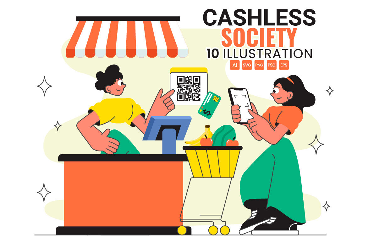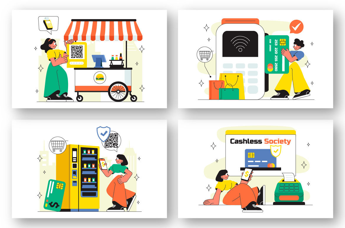Cashless Society Payment Vector Illustration featuring Mobile Transactions, Digital Payments, Credit Card Machine, and Encryption in a Background Suitable for Poster, Web Banner, Brochure, Landing Page and Others Background Template Features:    - Fully editable vector files, easy to edit the object, color and background     - Include 100% vector Ai, Eps 10, SVG    - PNG transparent background    - Include Psd Photoshop ( non grouped / unlabeled )    - Layered    - Preview jpeg    - Help File, to view more file properties    - Enjoy and don't hesitate to contact us    - Thanks :-)
