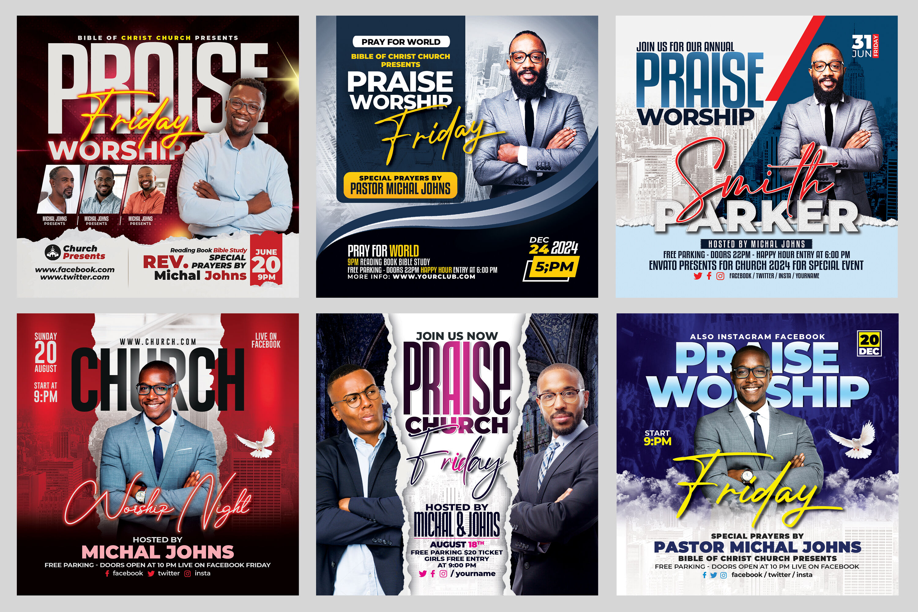 200 Church Flyers Bundle is a professional, clean, & creative Church Flyers Bundle  template designed to make a good impression. ................................................ Features : - Editable in adobe photoshop - Professional design - Uses free fonts - All objects, colors, & text are editable - Easy to Edit - Print Ready [CMYK] ................................................ Free Font Used : ................................................ If you like my work then please do not forget to follow & rate. It will be highly appreciated. Thanks.