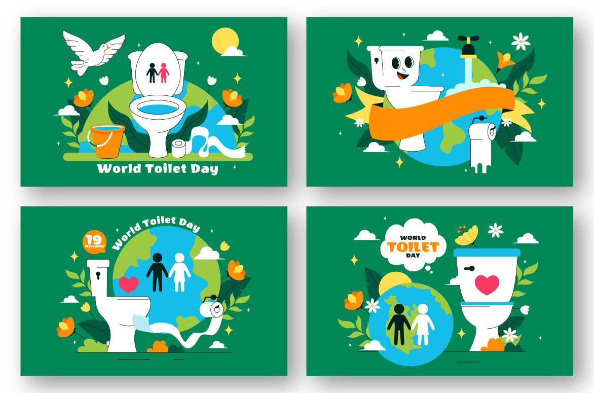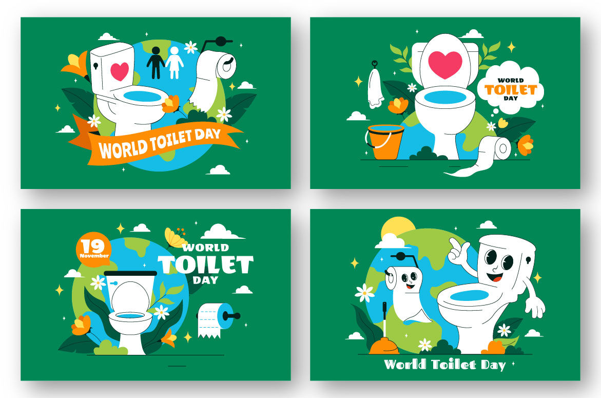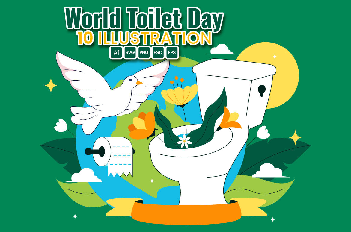 World Toilet Day Vector Illustration on November 19 featuring Toilet, Earth, and Bathroom Hygiene Equipment for Awareness in a Flat Background Suitable for Poster, Web Banner, Brochure, Landing Page and Others Background Template Features:    - Fully editable vector files, easy to edit the object, color and background     - Include 100% vector Ai, Eps 10, SVG    - PNG transparent background    - Include Psd Photoshop ( non grouped / unlabeled )    - Layered    - Preview jpeg    - Help File, to view more file properties    - Enjoy and don't hesitate to contact us    - Thanks :-)