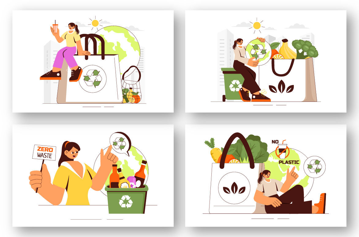 Zero Waste Lifestyle Illustration featuring Plastic Waste Being Sorted Into a Recycling Bin to Process Sustainability and Environmental Awareness Suitable for Poster, Web Banner, Brochure, Landing Page and Others Background Template Features:    - Fully editable vector files, easy to edit the object, color and background     - Include 100% vector Ai, Eps 10, SVG    - PNG transparent background    - Include Psd Photoshop ( non grouped / unlabeled )    - Layered    - Preview jpeg    - Help File, to view more file properties    - Enjoy and don't hesitate to contact us    - Thanks :-)