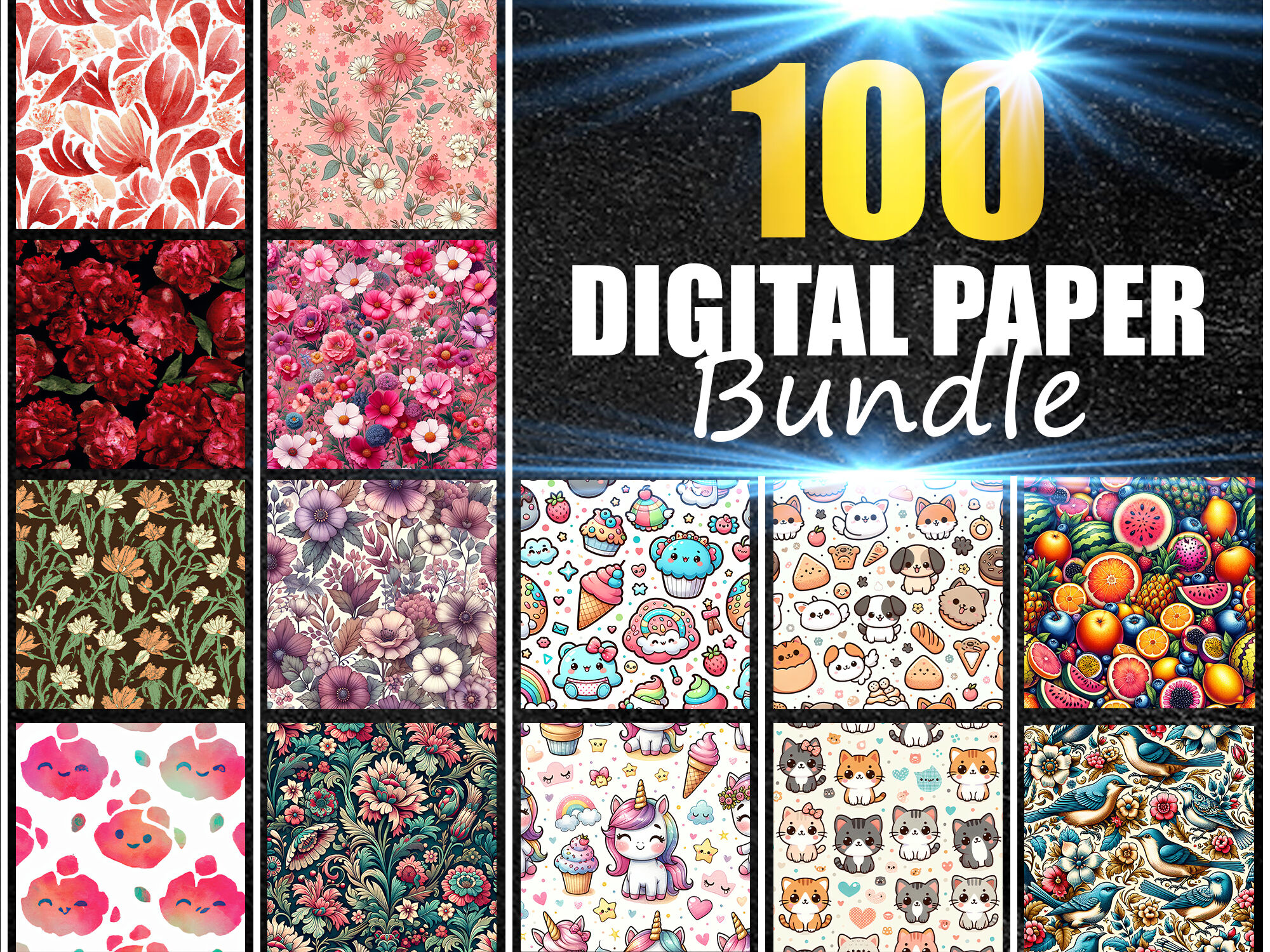 100 Digital Papers Bundle