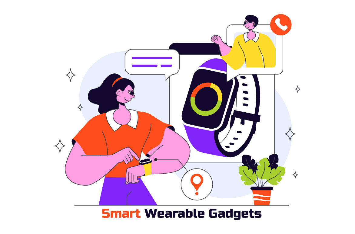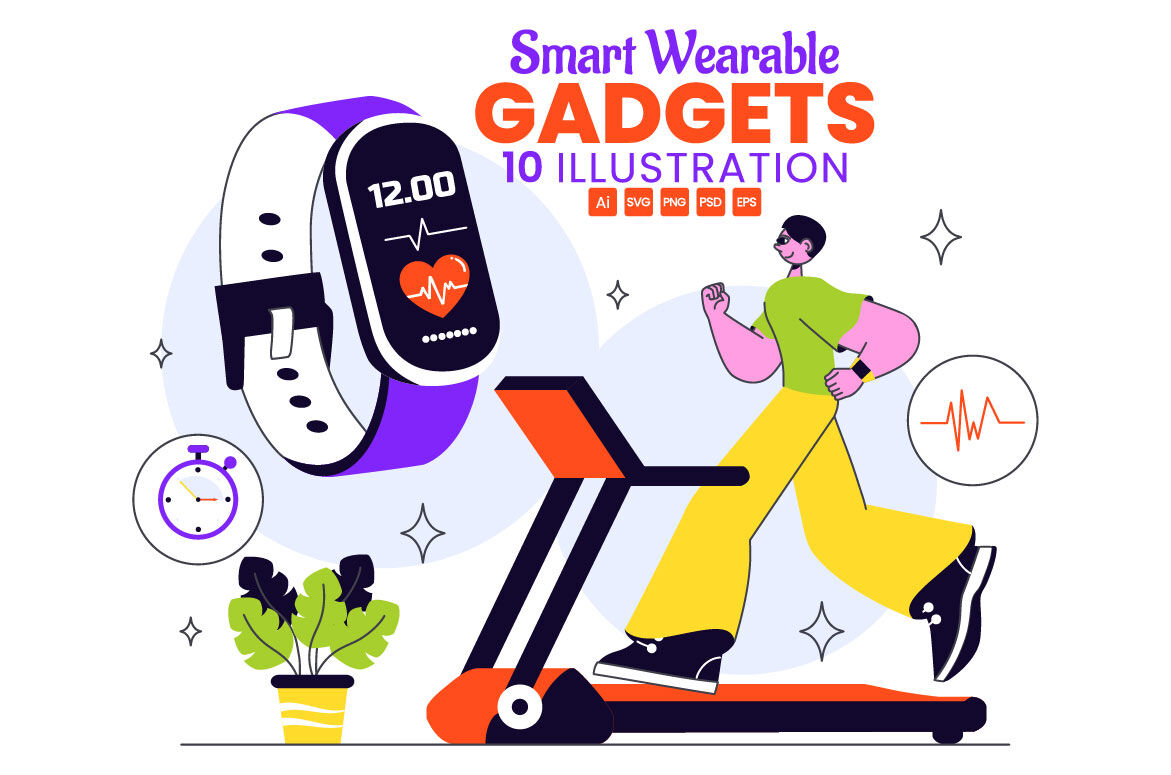 Smart Wearable Gadgets Vector Illustration Featuring Technology Devices with Comprehensive Health Tracking Applications, Music, and Communication Apps Suitable for Poster, Web Banner, Brochure, Landing Page and Others Background Template Features:    - Fully editable vector files, easy to edit the object, color and background     - Include 100% vector Ai, Eps 10, SVG    - PNG transparent background    - Include Psd Photoshop ( non grouped / unlabeled )    - Layered    - Preview jpeg    - Help File, to view more file properties    - Enjoy and don't hesitate to contact us    - Thanks :-)