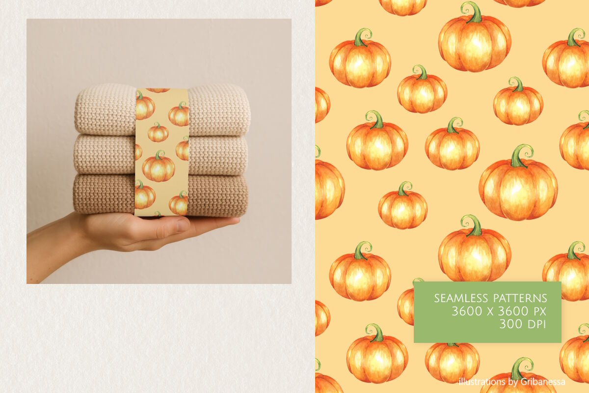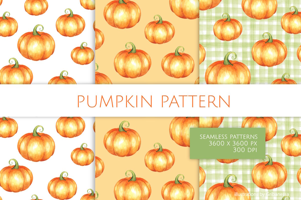 Watercolor Pumpkin Seamless Pattern Set