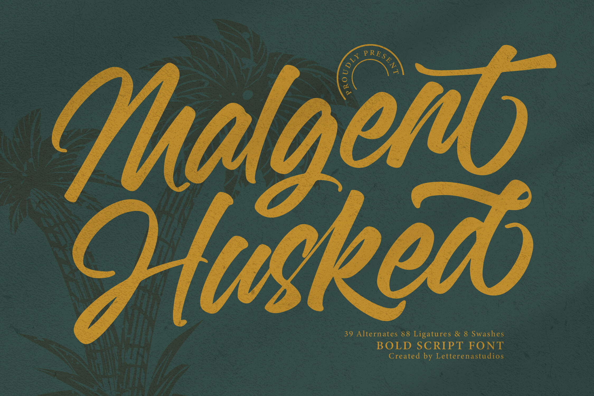 Malgent Husked - Bold Script Font , from Letterena, is a Luxury Script font, suitable for any projects such as: logos, branding projects, homeware designs, product packaging, mugs, quotes, posters, shopping bags, t-shirts, book covers, name card, invitation cards, greeting cards, label, photography, watermark, special events, and all your other luxury and beautiful projects that need a Luxury Script taste.