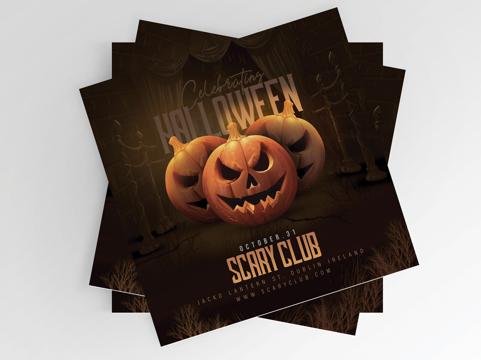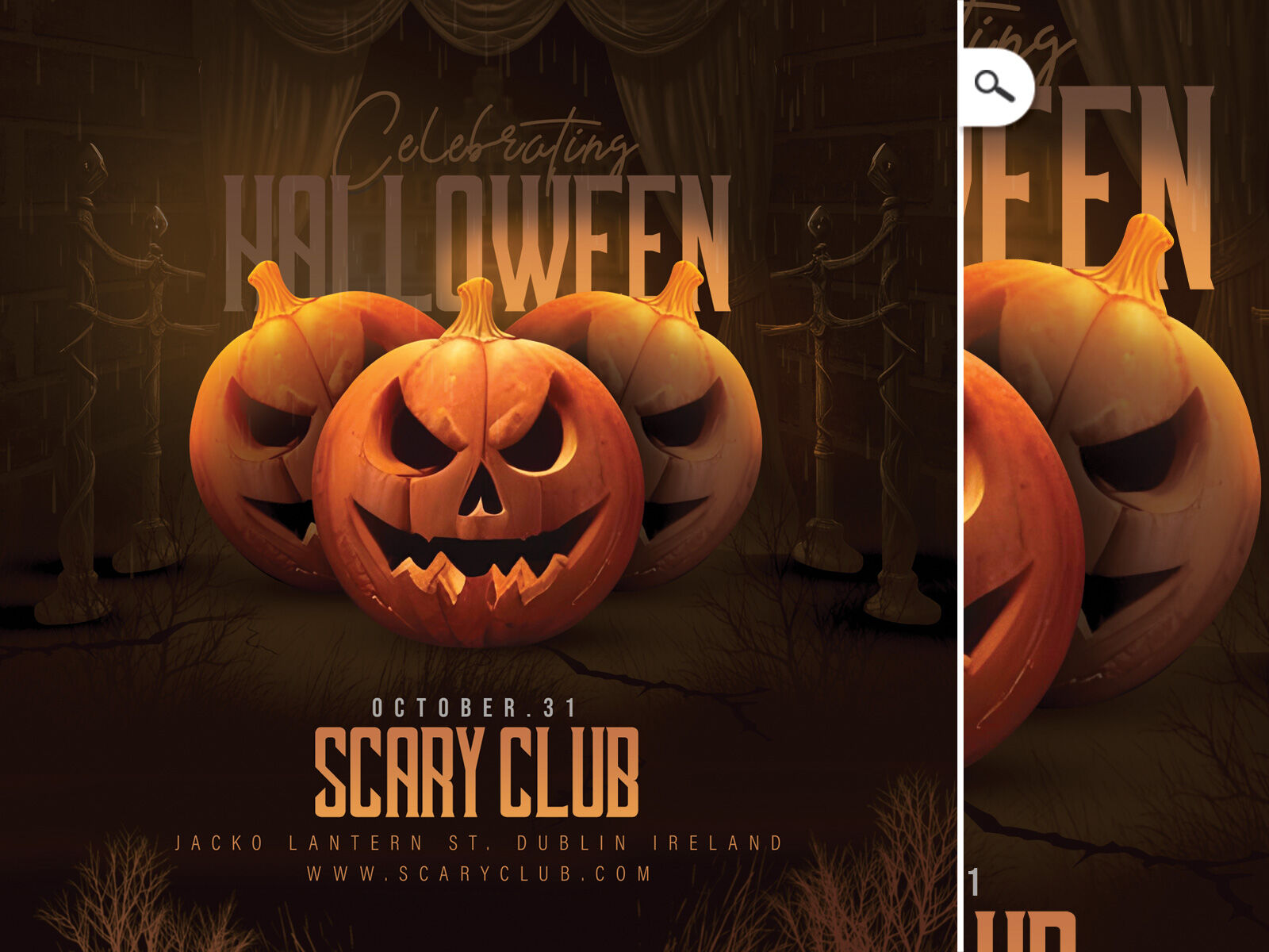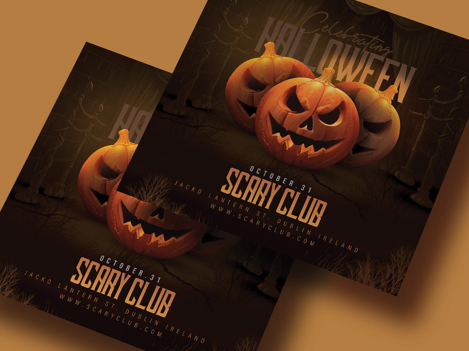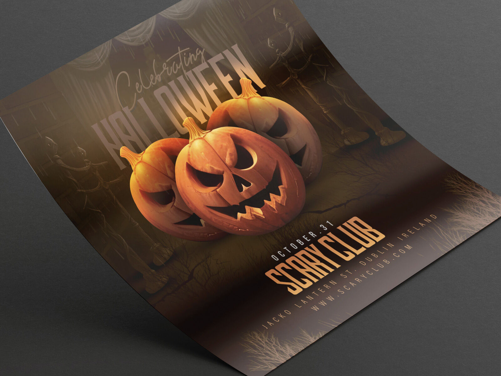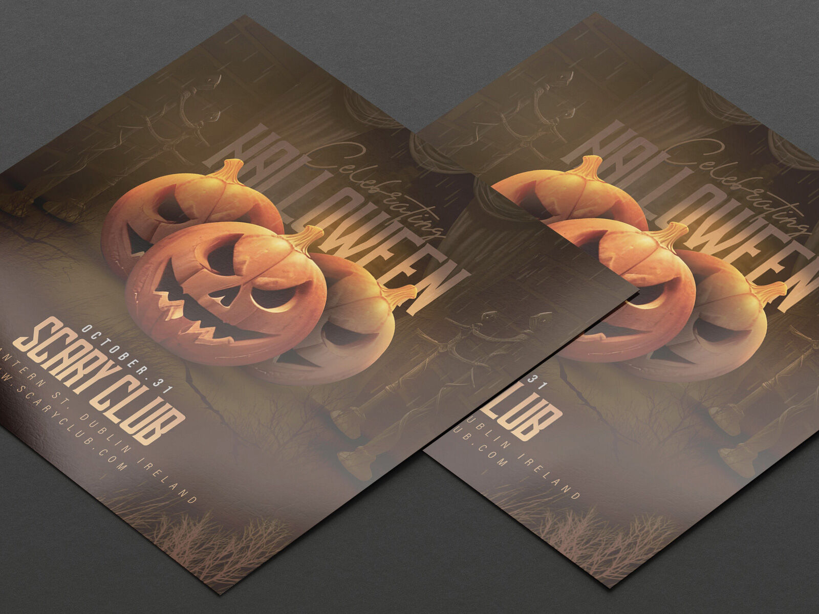 Halloween Celebration Party Flyer  is a print flyer template for anything related to halloween. From halloween parties to celebrations in a club, bar or a private place, this flyer is made for all this, for any event, special evening, themed eve Fully organized, layered and named Fully and easily editable Print Ready, CMYK colors Bleeding guidelines are included as expected. Help file with font links inside the main file
