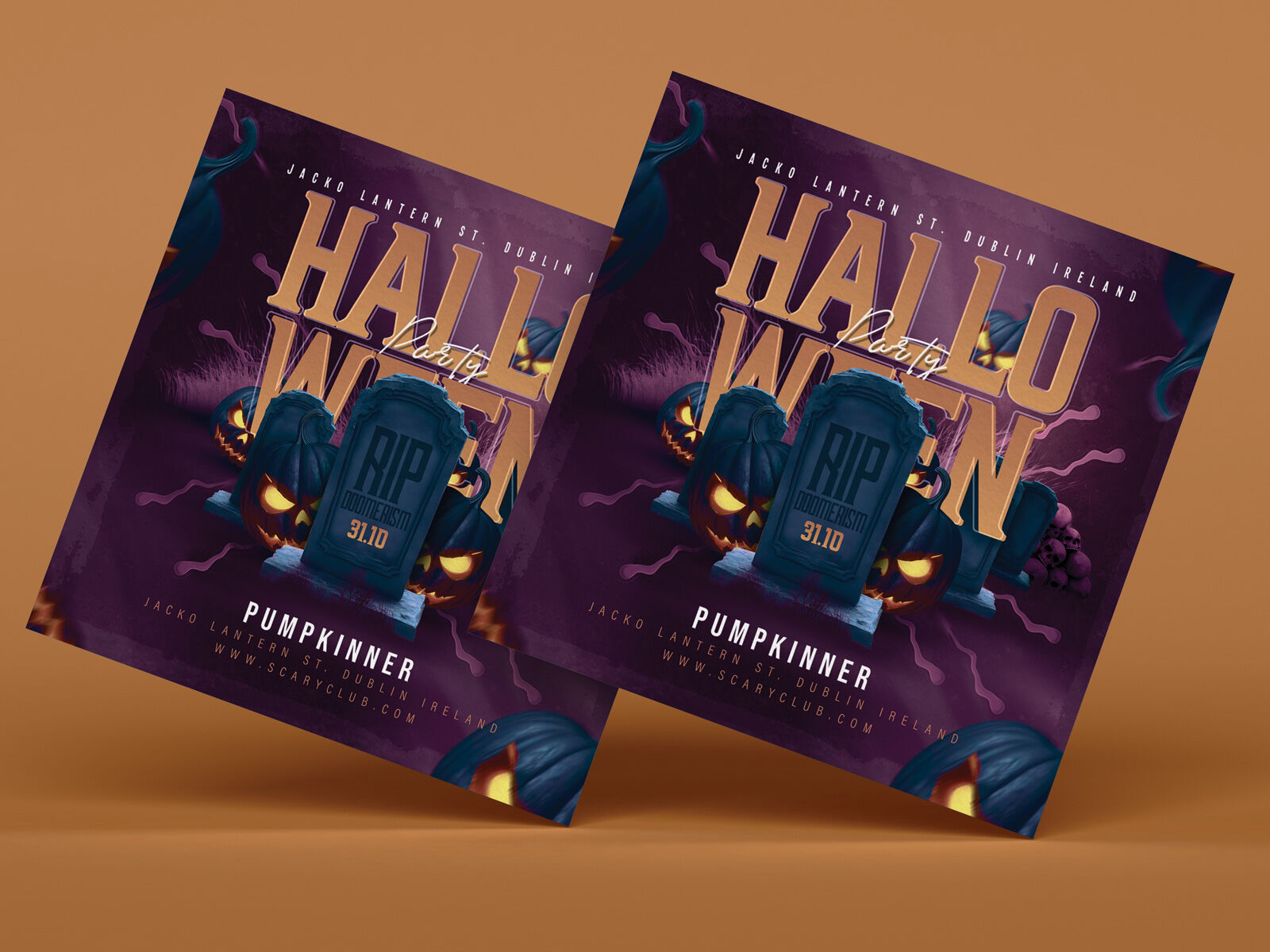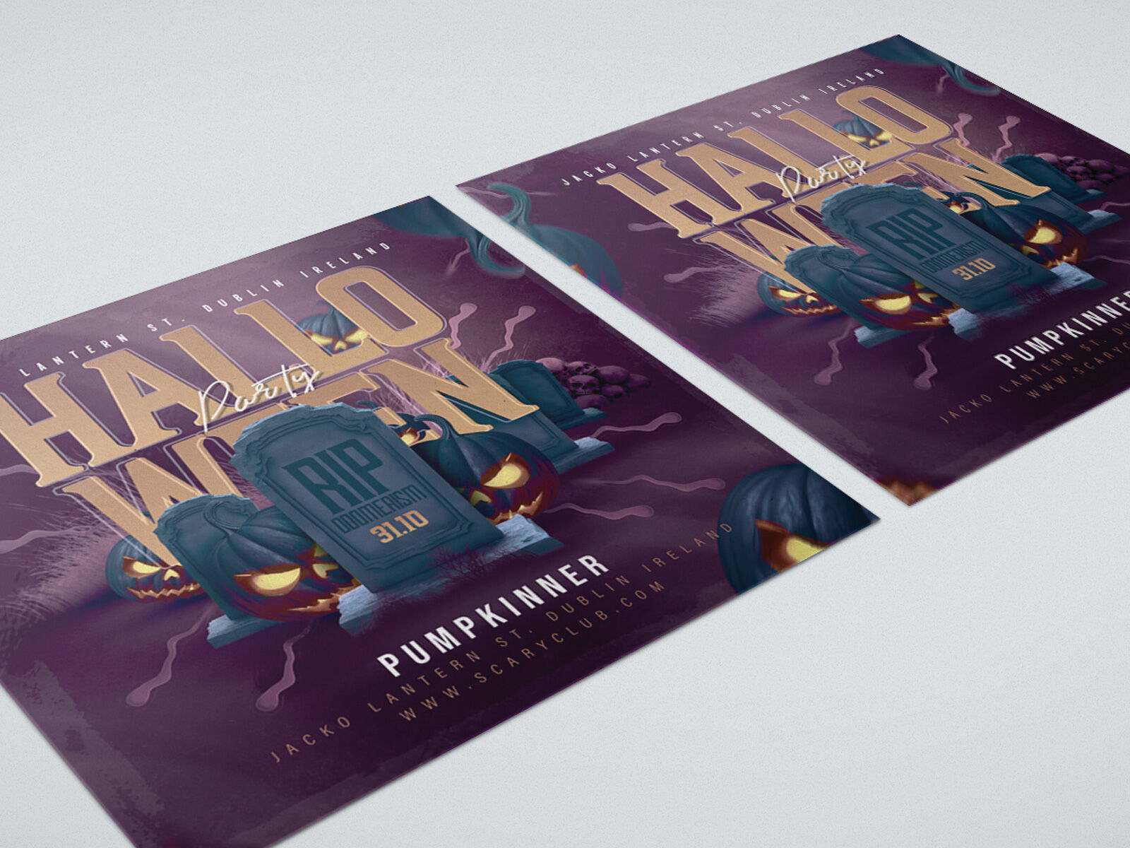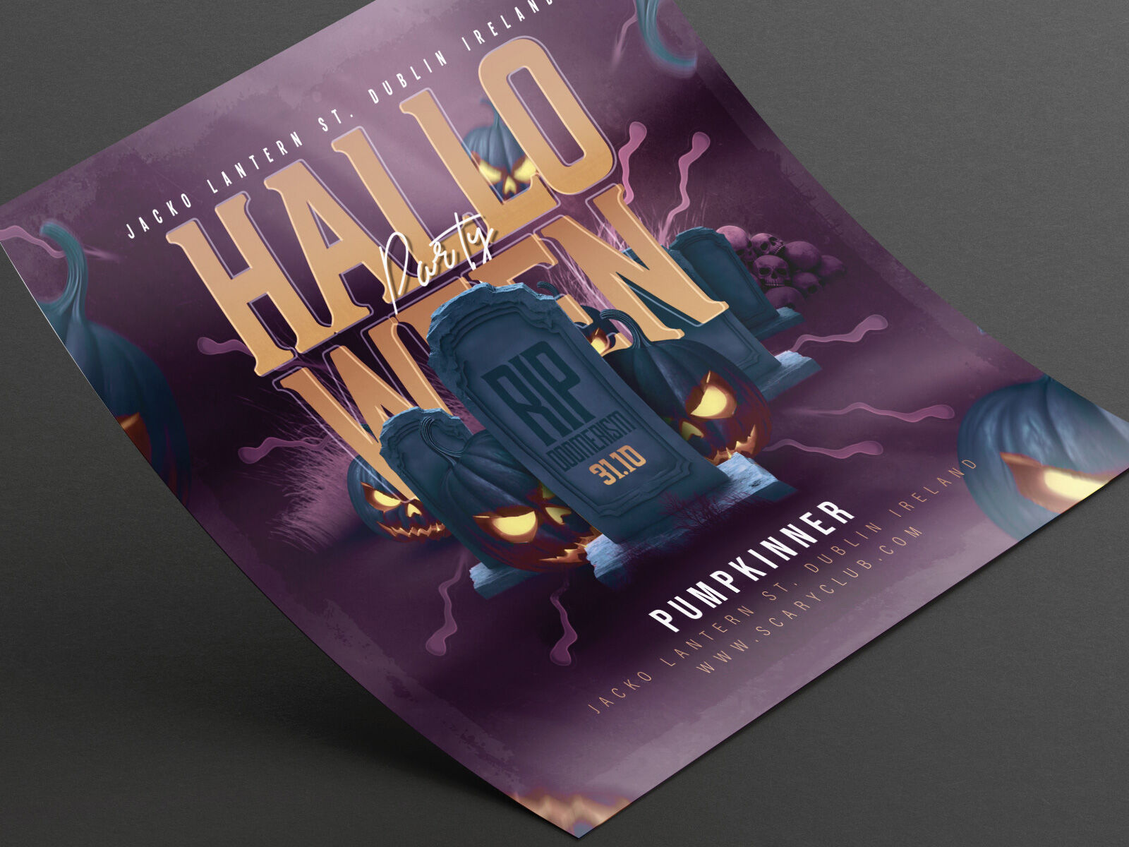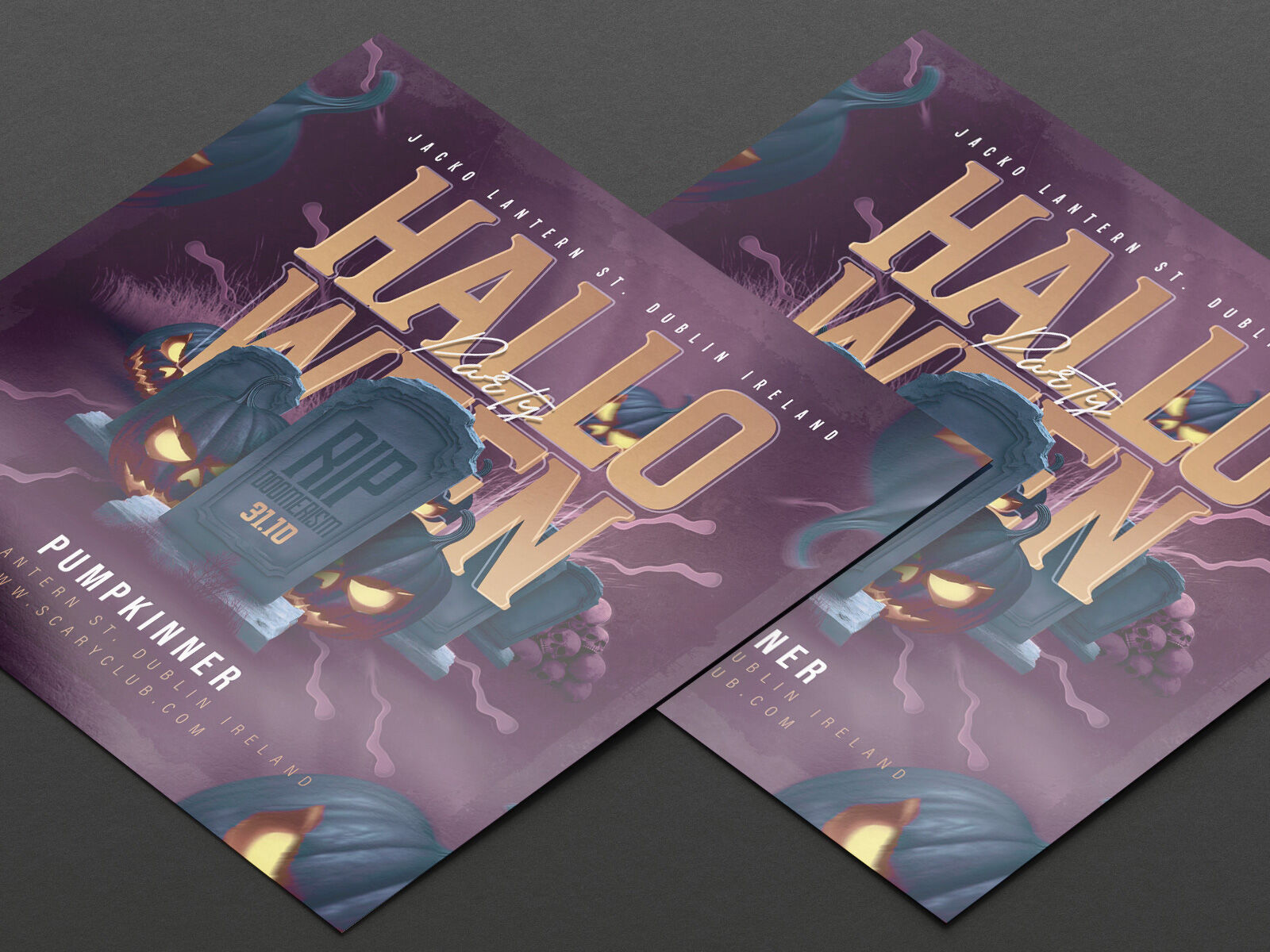 Halloween Party Flyer Template is a print flyer template for anything related to halloween. From halloween parties to celebrations in a club, bar or a private place, this flyer is made for all this, for any event, special evening, themed eve, special night, costumed in particular. Or beat related as well   Fully organized, layered and named Fully and easily editable Print Ready, CMYK colors Bleeding guidelines are included as expected. Help file with font links inside the main file   bash, celebration, club, costume, jack'o lantern, deadman, disguise, eve, evening, event, evil, flyer, ghost, halloween, hell, ireland, irish, mansion, monster, night, party, print, pub, scaring, pumpkin, skull, spooky, theme, themed, day, usa