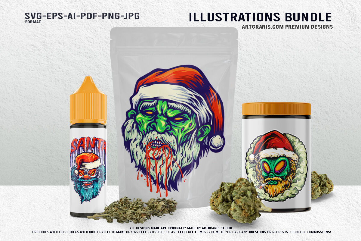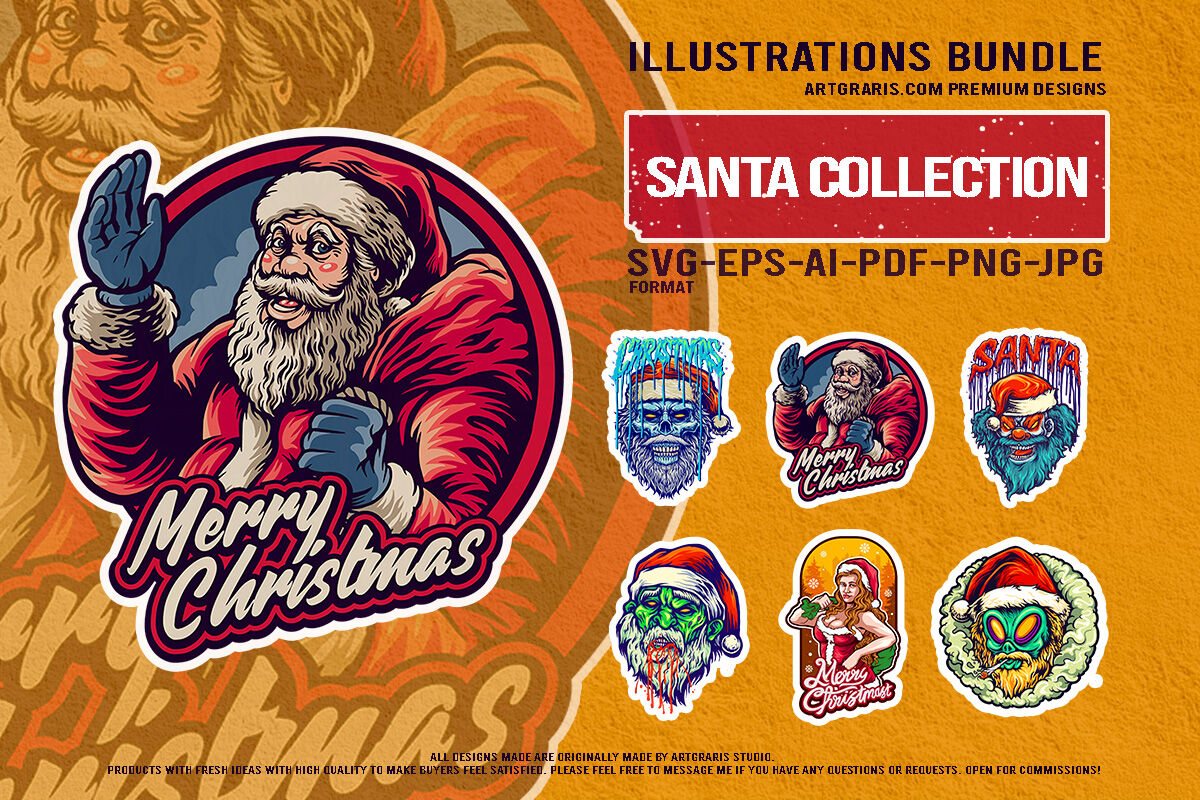 Spooky Santa Claus Haunted Christmas Graphic Illustration Bundle