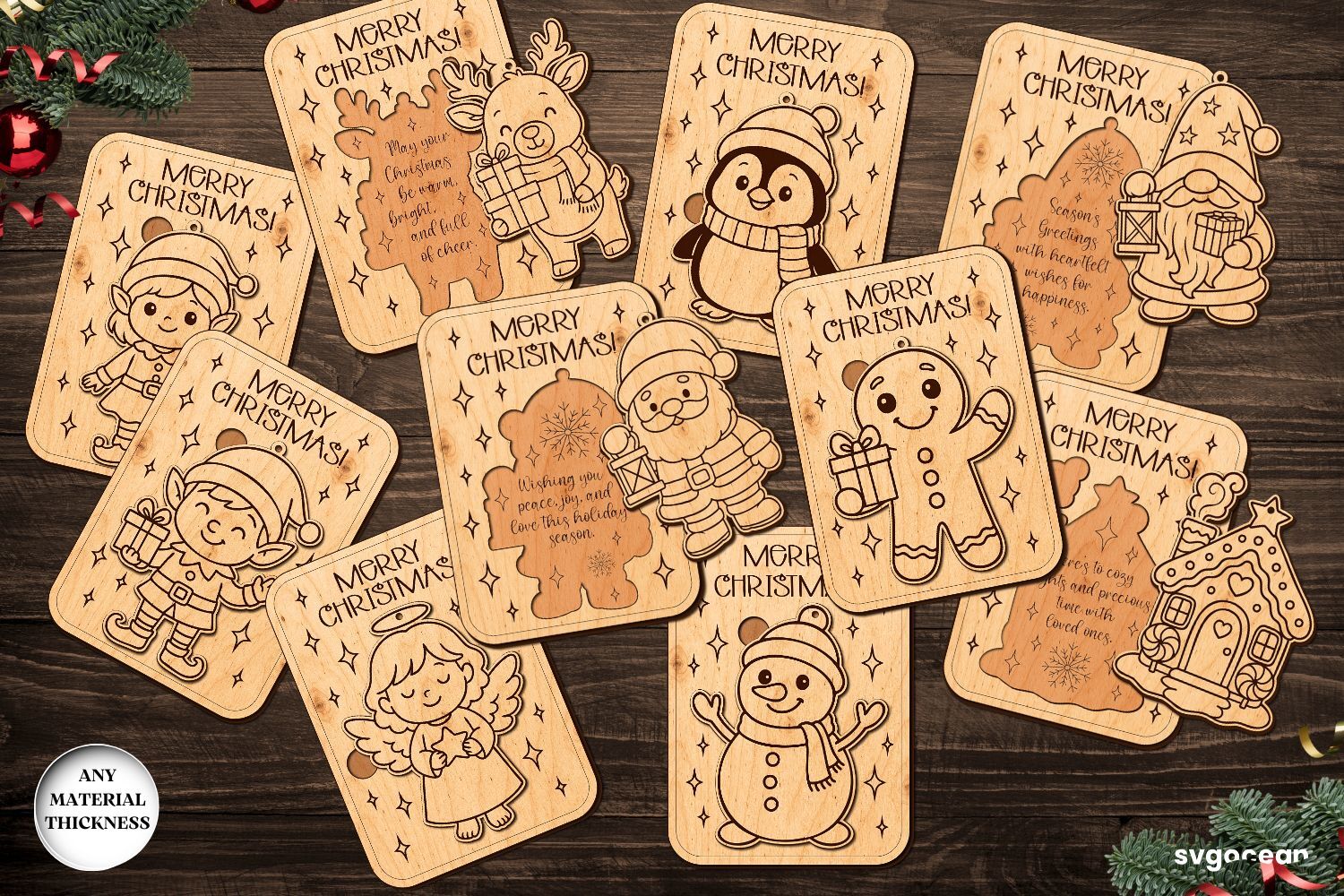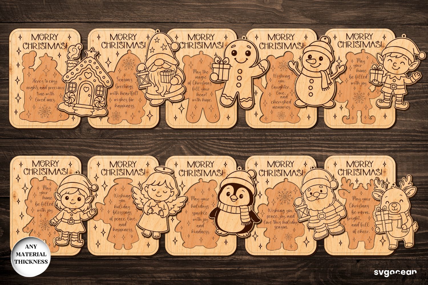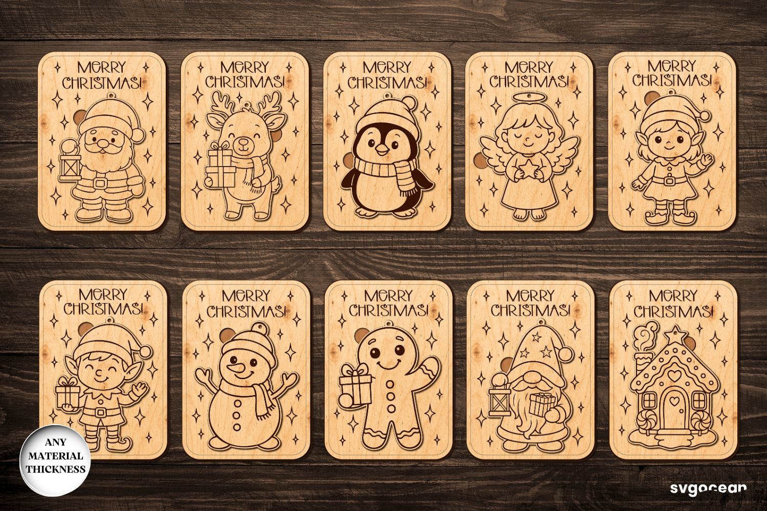 Christmas Cards Ornament SVG Bundle | Laser Cut | SVG Number of designs included: 10 Formats included: DWG, SVG, AI, EPS, DXF Wood thickness: Any Dimensions: Height: ≈ 14 cm (5.5 in) Width: ≈ 10 cm (3.9 in) Recommended material: Plywood, MDF, Acrylic, Plexiglas, Metal, Cardboard ✔️ HOW CAN I EXTRACT MY .ZIP FILE? You will need to extract to unzip or open your files. For mac you can simply double click the file and it should open automatically. For PC you can right click the file and choose extract all.  © All rights reserved