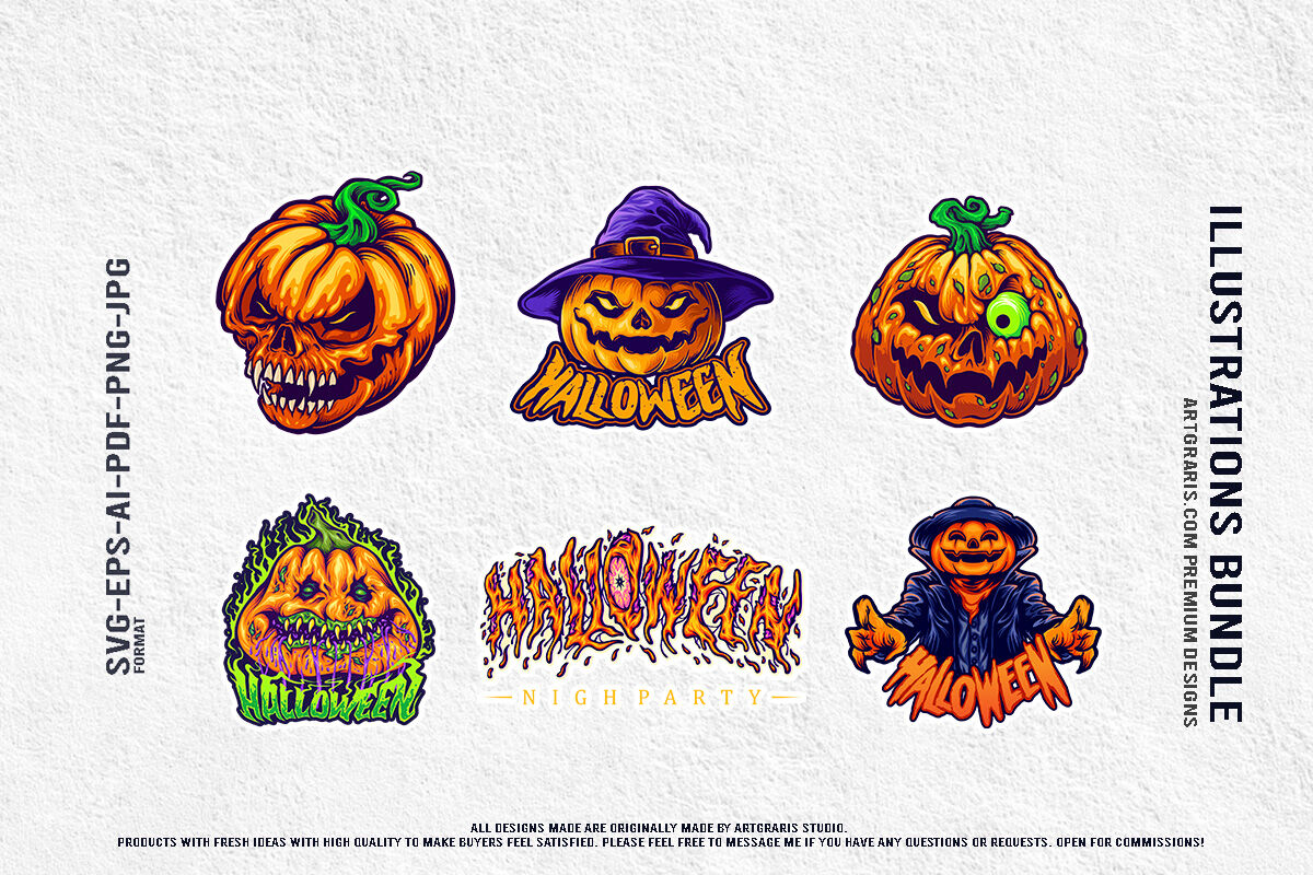 Spooky Party Vector Pack With Creepy Pumpkin Illustrations