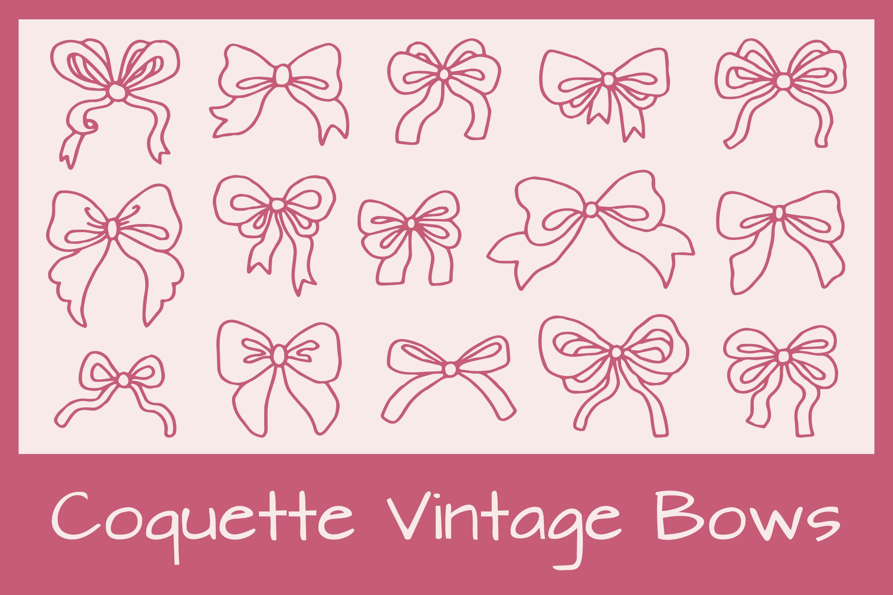 A charming set of hand-drawn vintage bows in coquette style. Perfect for girlish designs, holiday decor, scrapbooking, cards, stickers, packaging, and more.