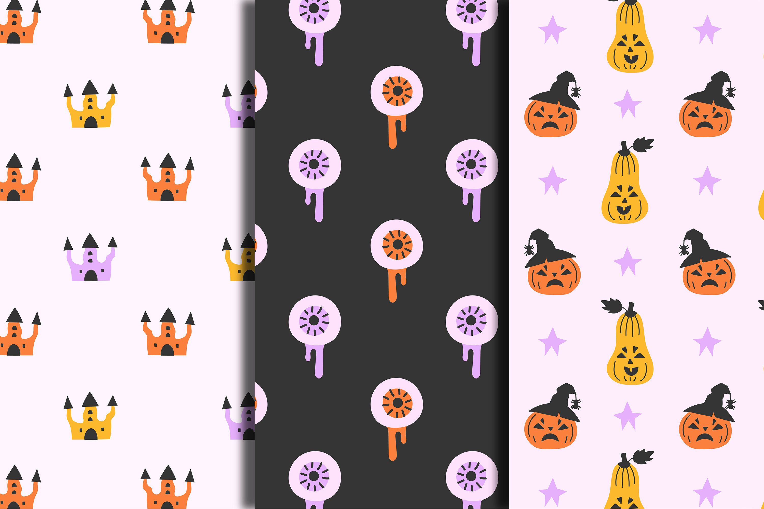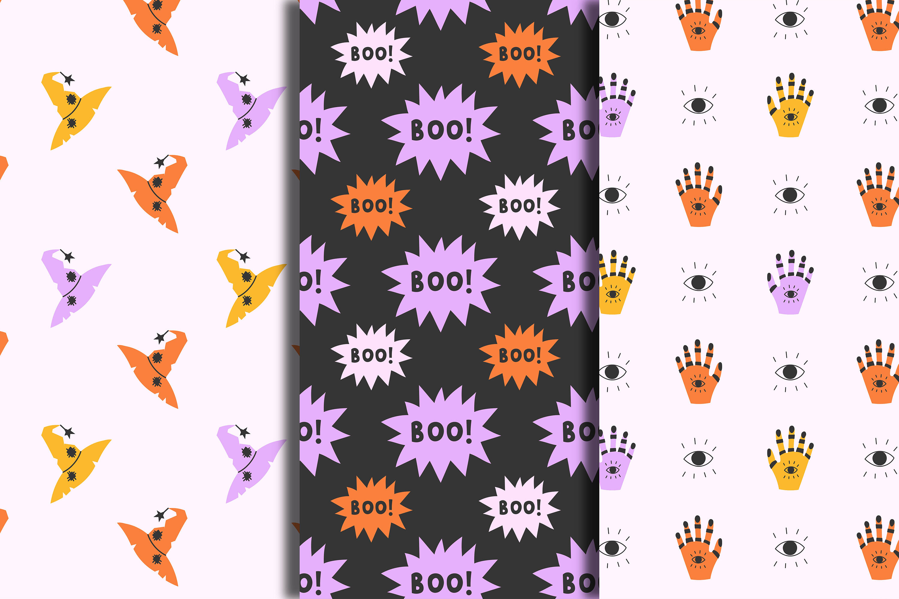 Get ready for a hauntingly fun design adventure with this collection of Spooky Halloween Seamless Patterns! This hand drawn vector set features 10 unique and playful patterns including creepy ghosts, crossbones and skulls, carved pumpkins and jack o’ lanterns, witch’s hats, spider webs, haunted castles, and cheerful “Boo!” speech bubbles. With its flat, colorful, and slightly childish style, this set is perfect for both kids and fun-loving adults.