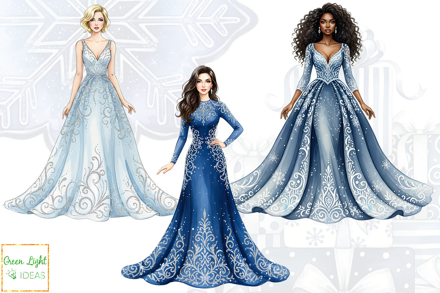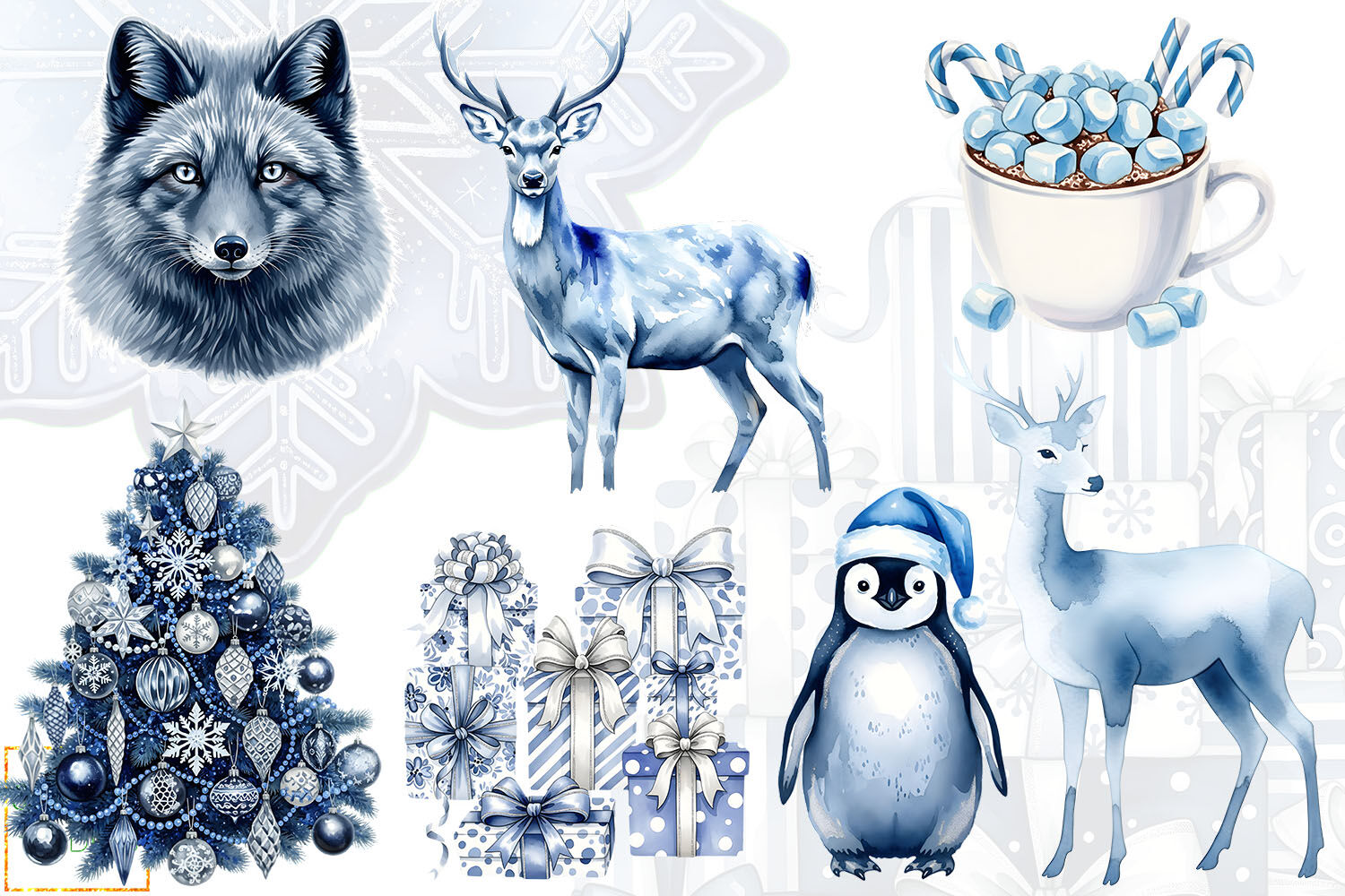 Blue Winter Christmas Clipart, Cold Christmas Graphic PNG Bundle