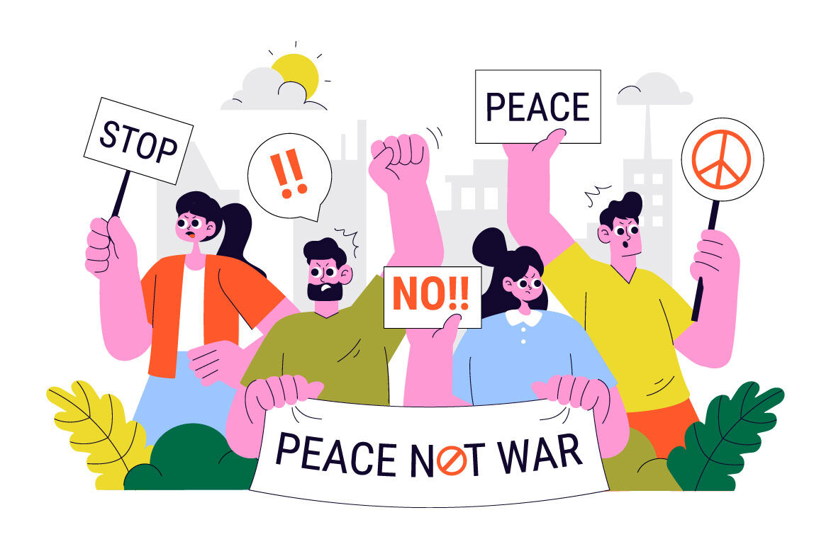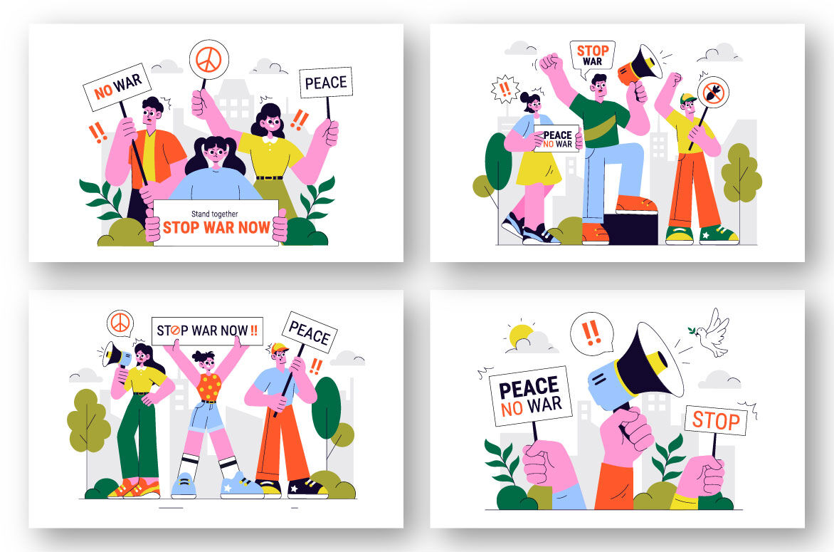 Protest Anti War Resistance Demonstration Illustration Featuring Protesters, Activists, and a Crowd with Placards for a Peaceful Social Demonstration Suitable for Poster, Web Banner, Brochure, Landing Page and Others Background Template Features:    - Fully editable vector files, easy to edit the object, color and background     - Include 100% vector Ai, Eps 10, SVG    - PNG transparent background    - Include Psd Photoshop ( non grouped / unlabeled )    - Layered    - Preview jpeg    - Help File, to view more file properties    - Enjoy and don't hesitate to contact us    - Thanks :-)