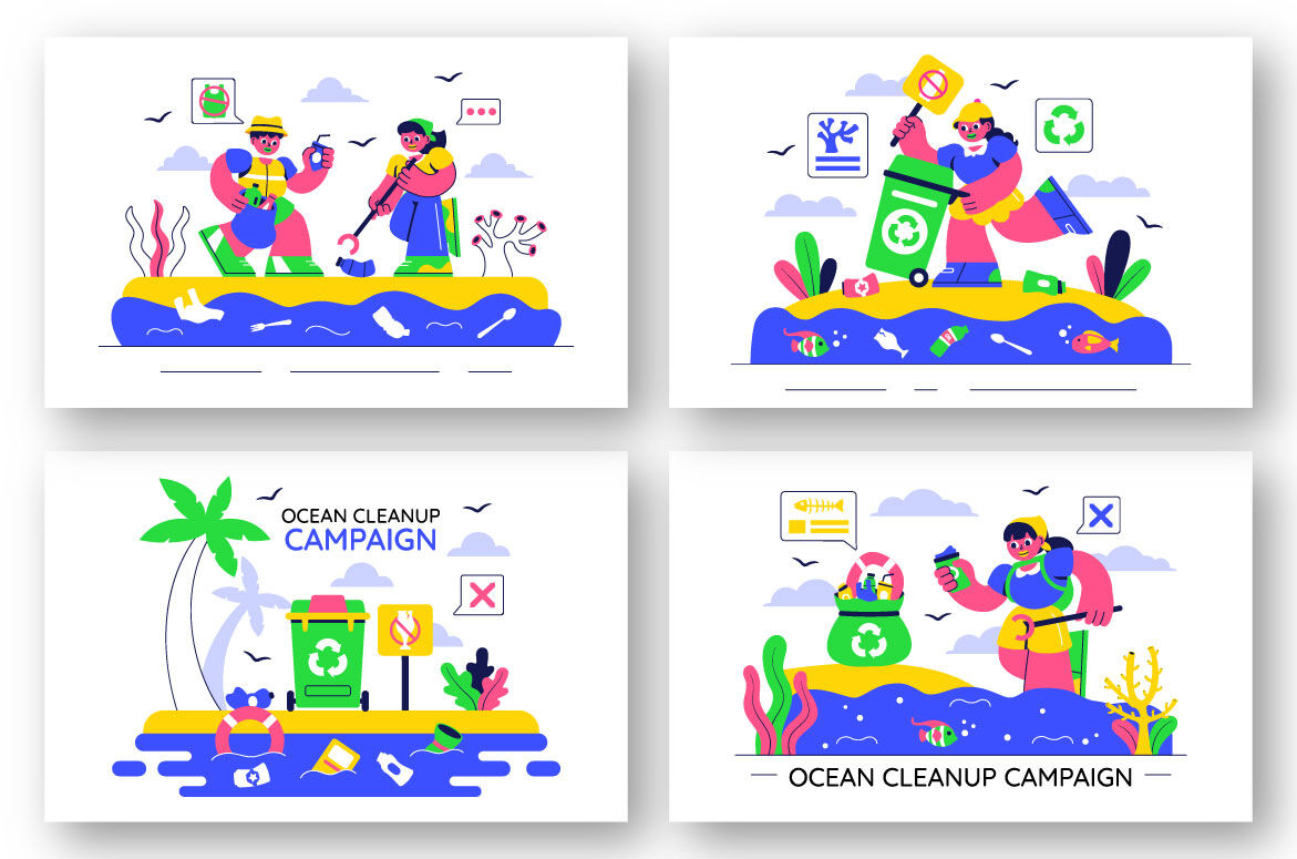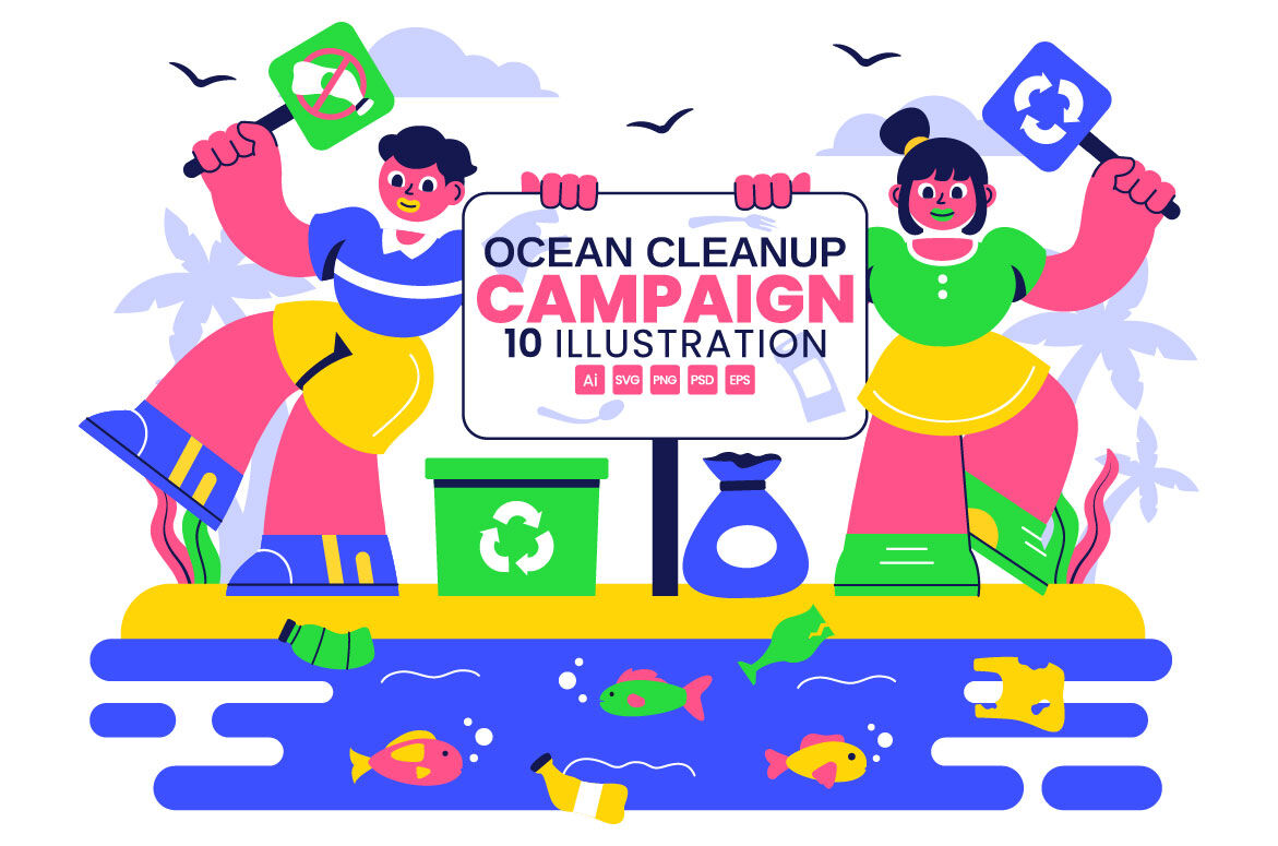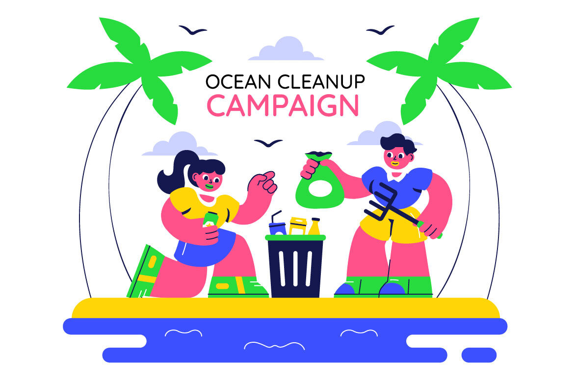 Ocean Cleanup Campaign Illustration Featuring Cleaning the Sea Beach from Trash and Garbage to Restore Nature and Promote Environmental Awareness Suitable for Poster, Web Banner, Brochure, Landing Page and Others Background Template Features:    - Fully editable vector files, easy to edit the object, color and background     - Include 100% vector Ai, Eps 10, SVG    - PNG transparent background    - Include Psd Photoshop ( non grouped / unlabeled )    - Layered    - Preview jpeg    - Help File, to view more file properties    - Enjoy and don't hesitate to contact us    - Thanks :-)