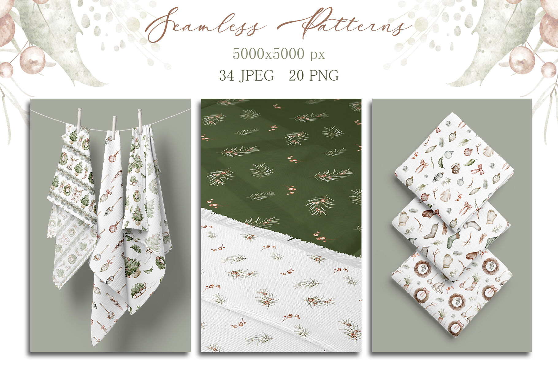 20 seamless patterns (300 dpi, PNG, 5000x5000px) Designed for seasonal DIY creators, graphic designers, stationery pros, and holiday crafters seeking, hand‑painted aesthetics.