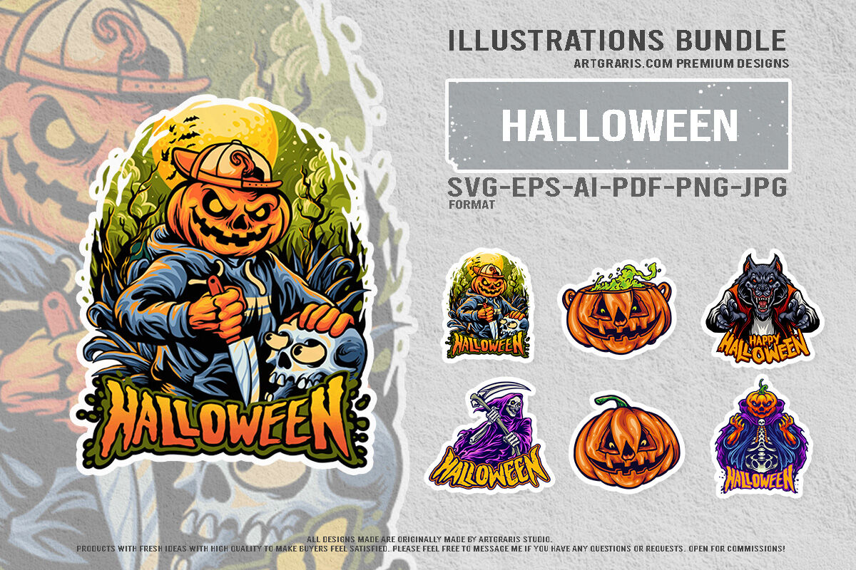 Halloween Night Creatures Pumpkin Monsters And Creepy Werewolf Pack