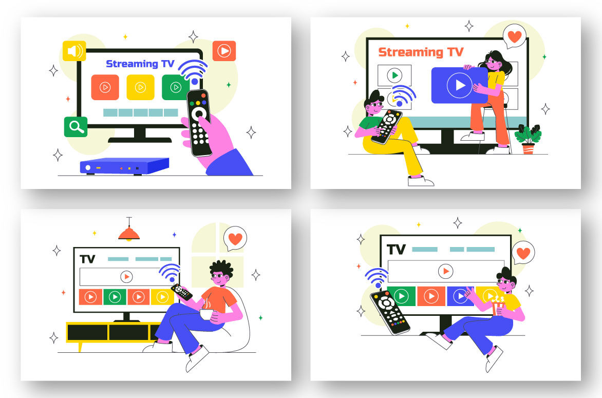 Subscription Streaming TV Vector Illustration Featuring Online Media Platforms with Educational, Entertainment, and News Content in a Flat Background Suitable for Poster, Web Banner, Brochure, Landing Page and Others Background Template Features:    - Fully editable vector files, easy to edit the object, color and background     - Include 100% vector Ai, Eps 10, SVG    - PNG transparent background    - Include Psd Photoshop ( non grouped / unlabeled )    - Layered    - Preview jpeg    - Help File, to view more file properties    - Enjoy and don't hesitate to contact us    - Thanks :-)