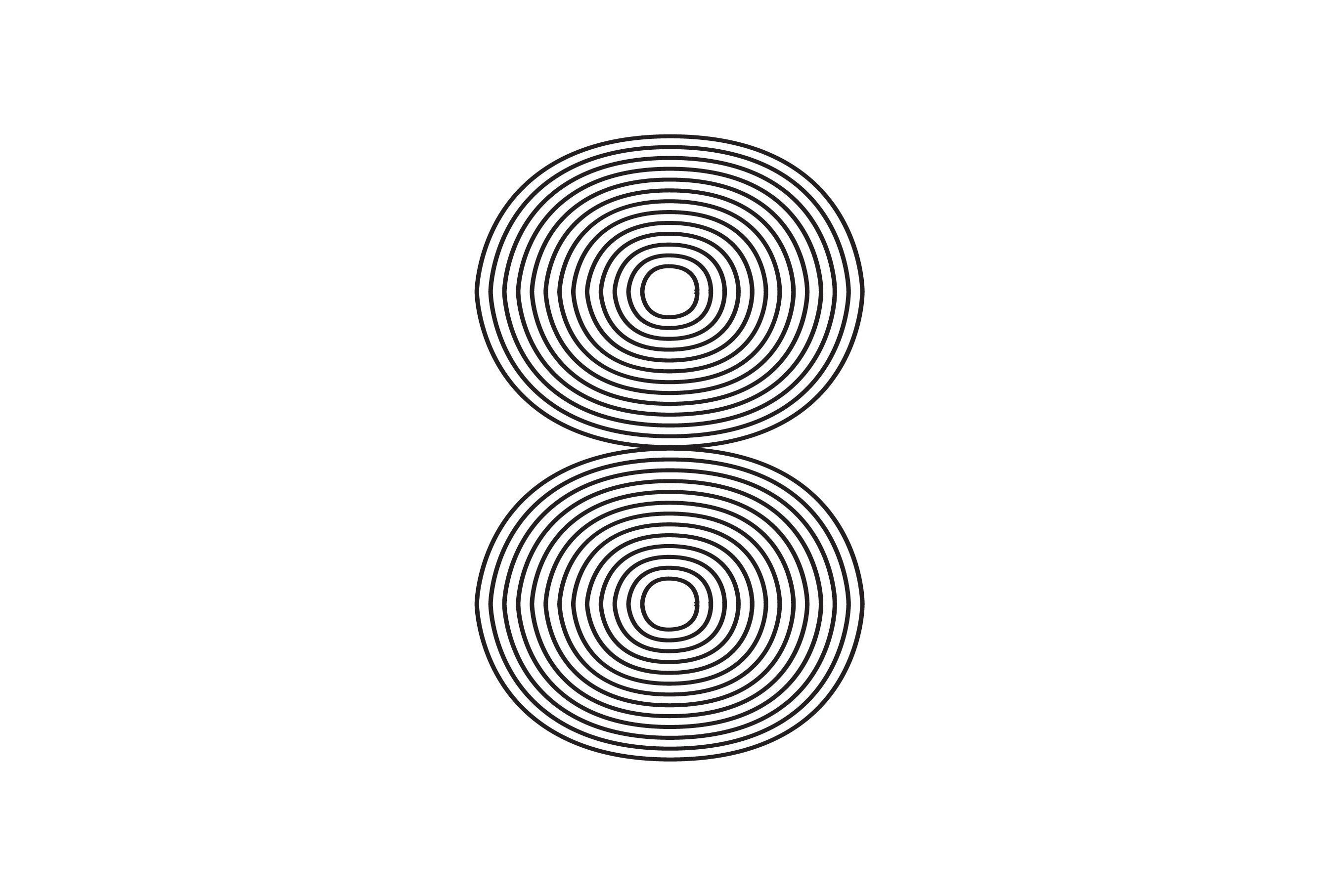 Number eight 8 linear in black thin striped lines isolated on white ba