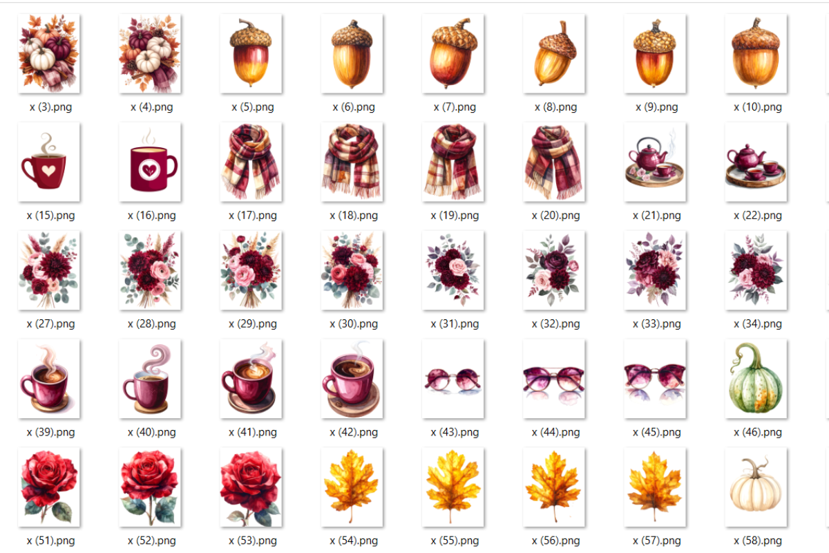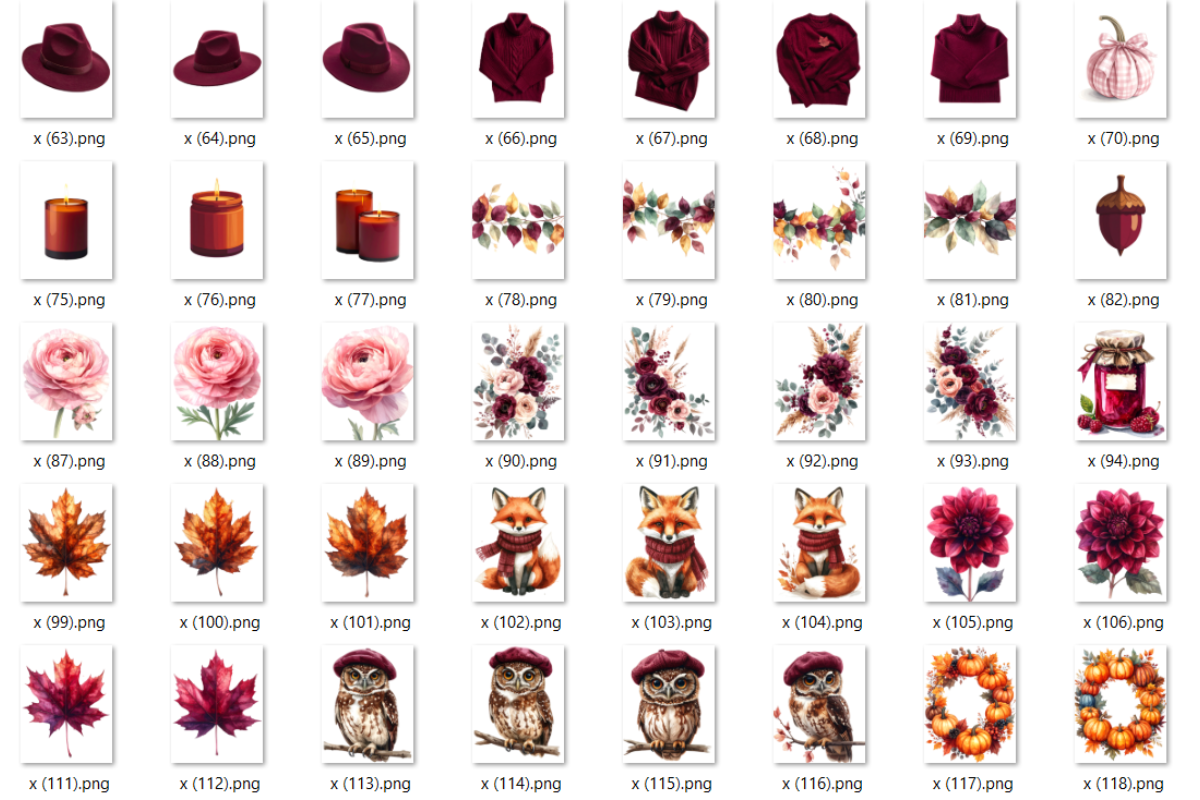Burgundy Autumn Clipart Bundle | 200 Fall PNG Illustrations